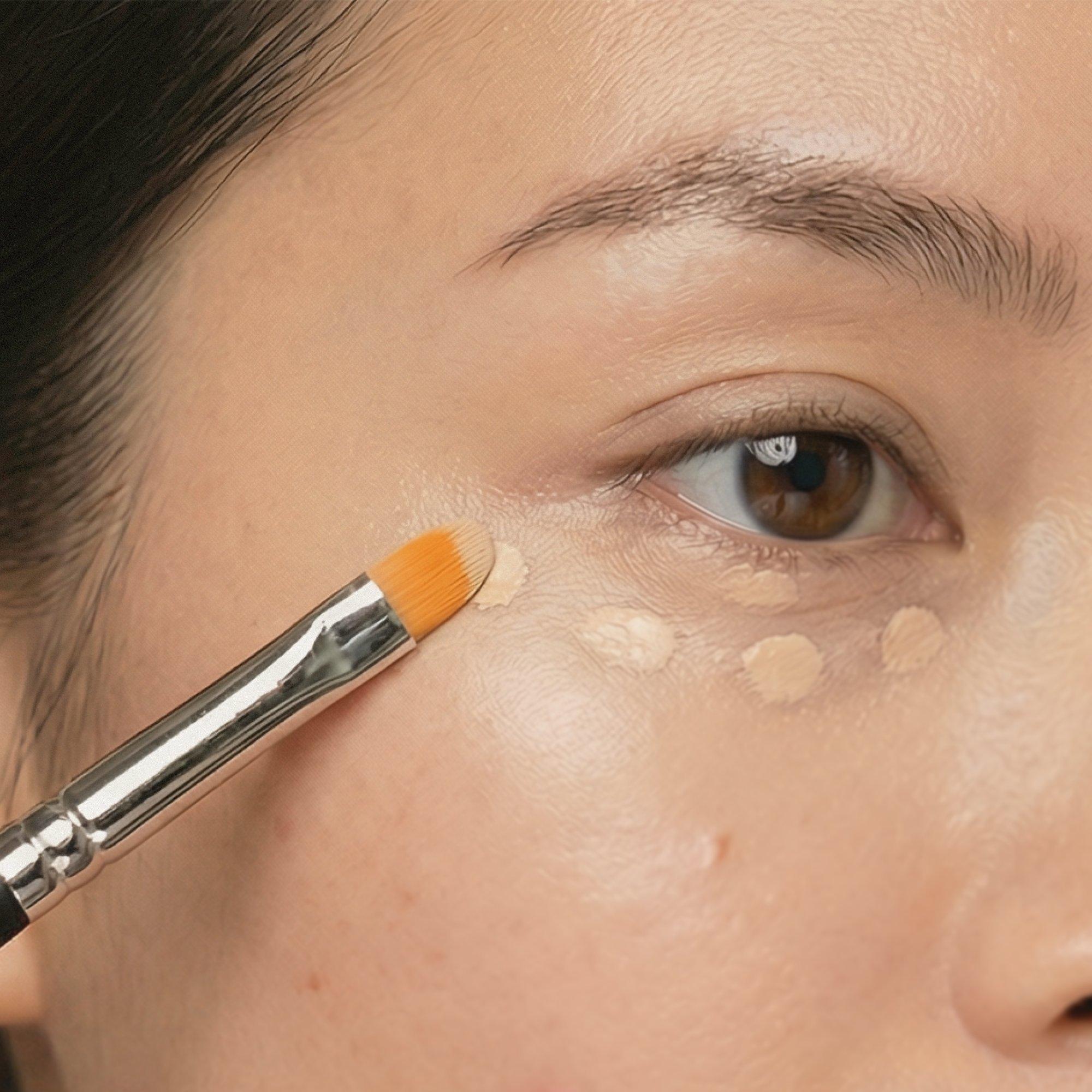 Apply pin-dot amounts of concealer in the shape of an upside down triangle starting at the inner corner of eye and blend with fingers or sponge. Repeat until desired coverage is achieved. Dot concealer directly onto blemishes, redness, broken capillaries, sun damage, brown spots, and uneven skin tone, then blend.