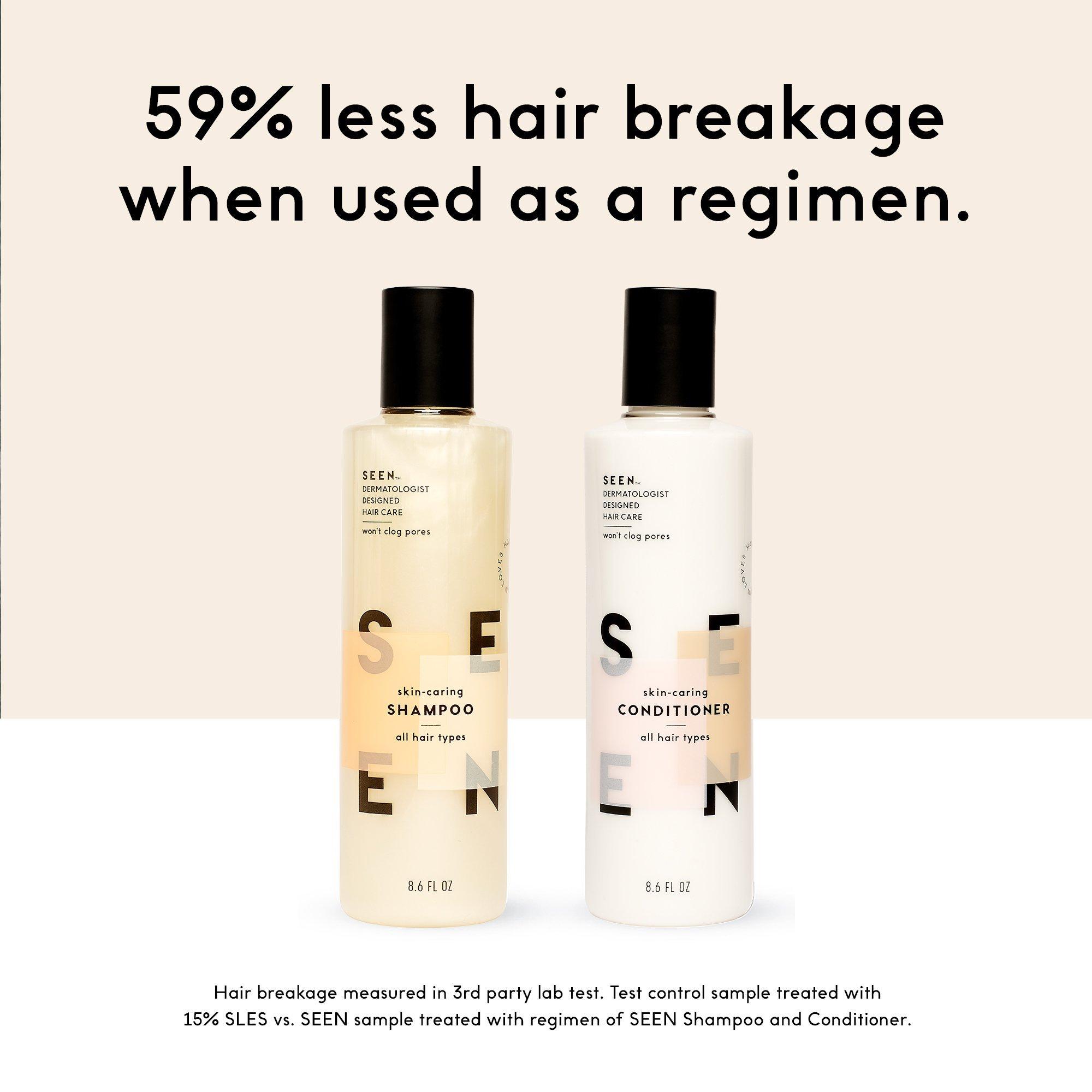 SEEN Conditioner hydrates, detangles, and softens, while promoting a healthy scalp for stronger, smoother, healthier hair. Formulated without sulfates, silicones, phthalates, parabens, dyes, pore-clogging oils, gluten, formaldehyde/formaldehyde releasers, or animal testing.