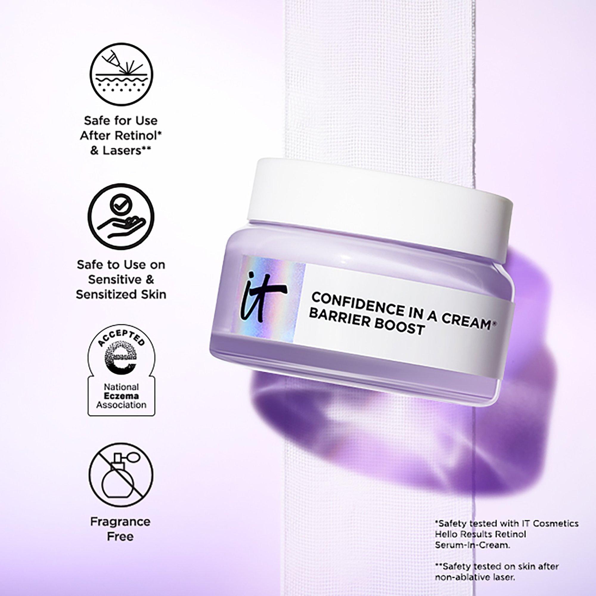 IT Cosmetics Confidence in a Cream® Barrier Boost Skin Barrier Repair Daily Moisturizer is an ultra-gentle, fragrance-free barrier cream that delivers 100HR hydration to strengthen & soothe even the most sensitive skin. This lightweight moisturizer can be applied AM & PM for bouncy, recovered skin.