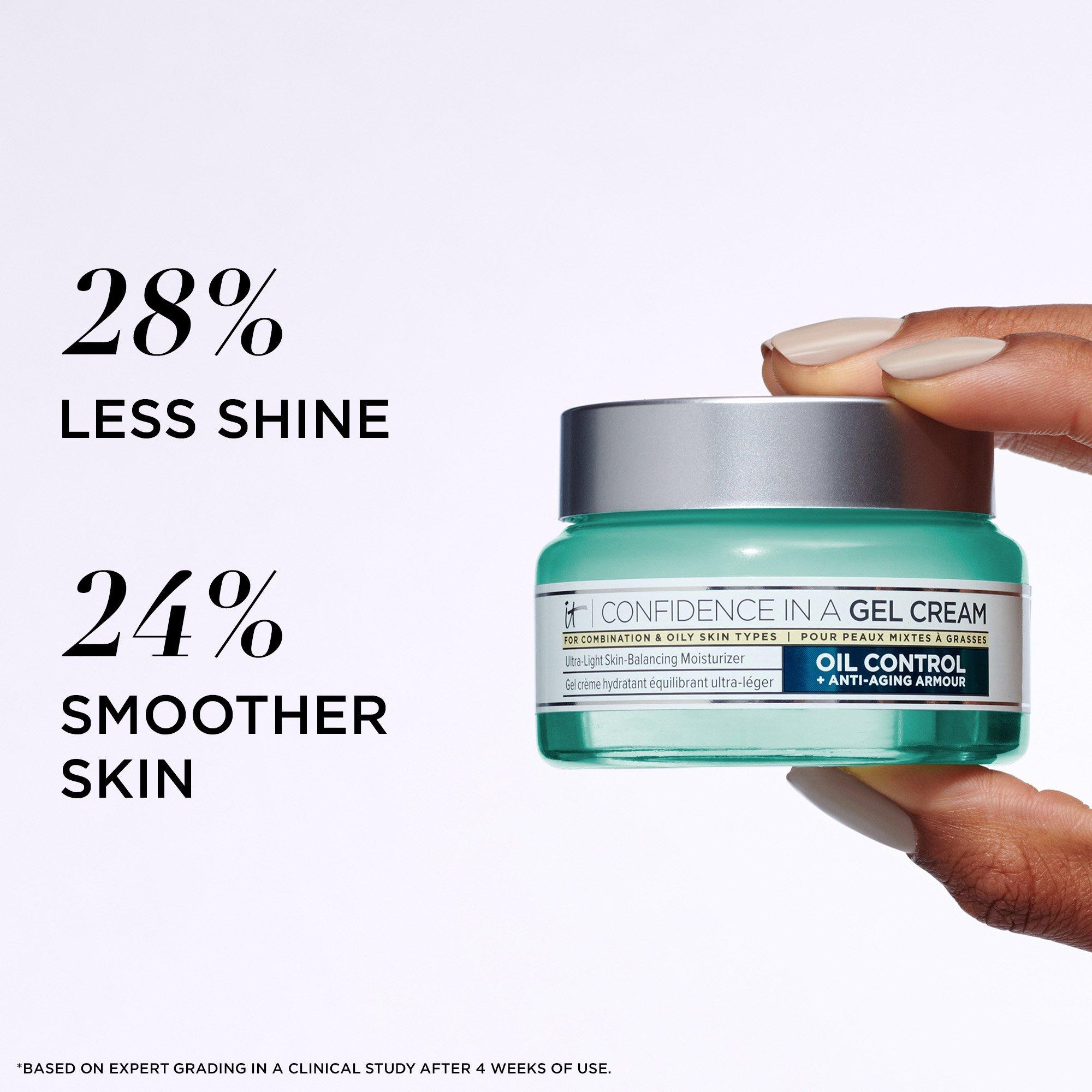 IT Cosmetics Confidence in a Gel Cream Oil-Free Moisturizer is your ultra-light, breathable face moisturizer that reduces shine, beats oil, and boosts hydration for balanced skin now and over time.