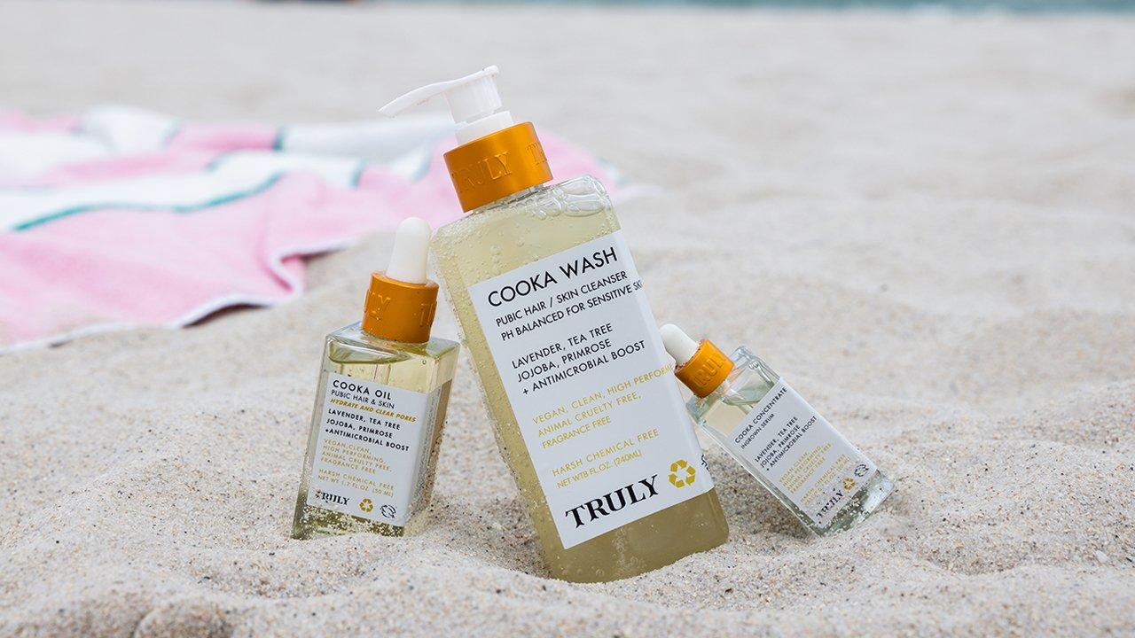 Cooka Cleansing Wash For Pubic Hair And Skin. Truly's cult-favorite Cooka Oil - in cleanser form! A pH balanced formula enriched with a soothing blend of lavender, tea tree, and jojoba oil, Cooka Wash quells bikini area inflammation and ingrowns while nourishing the rest of your skin.