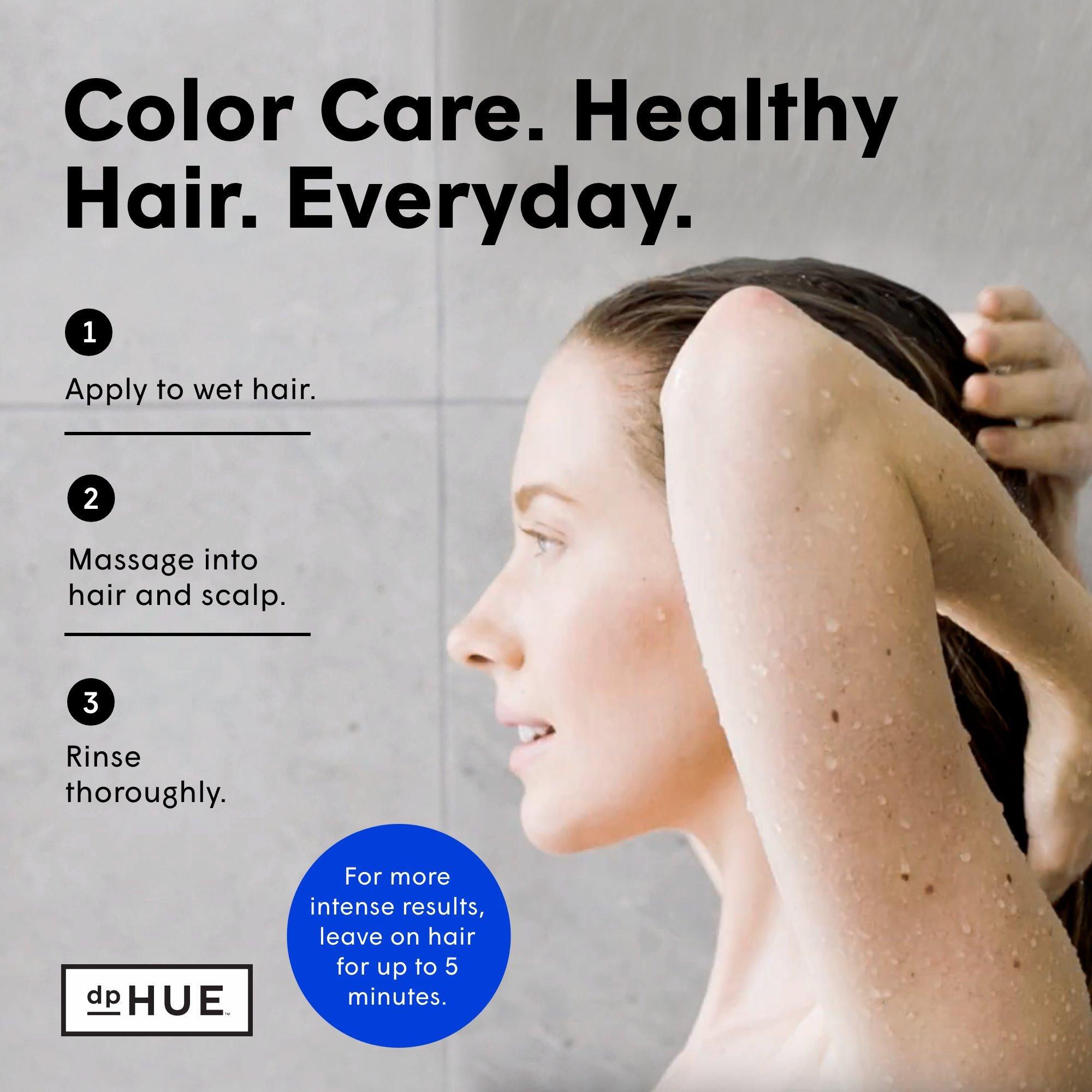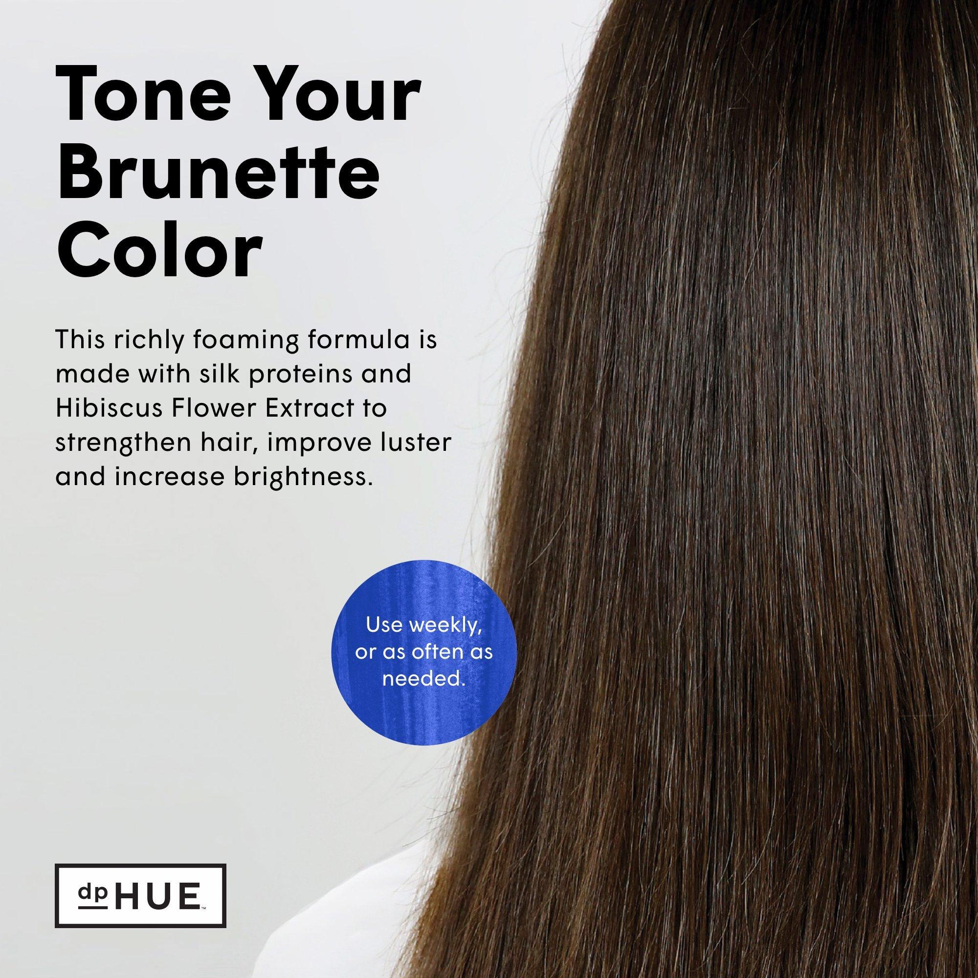 Apply to wet hair, massaging into hair and scalp. Rinse thoroughly. For more intense results, leave on hair for up to five minutes. Use as needed and follow with dpHUE Cool Brunette Conditioner. Use weekly or as often as needed.