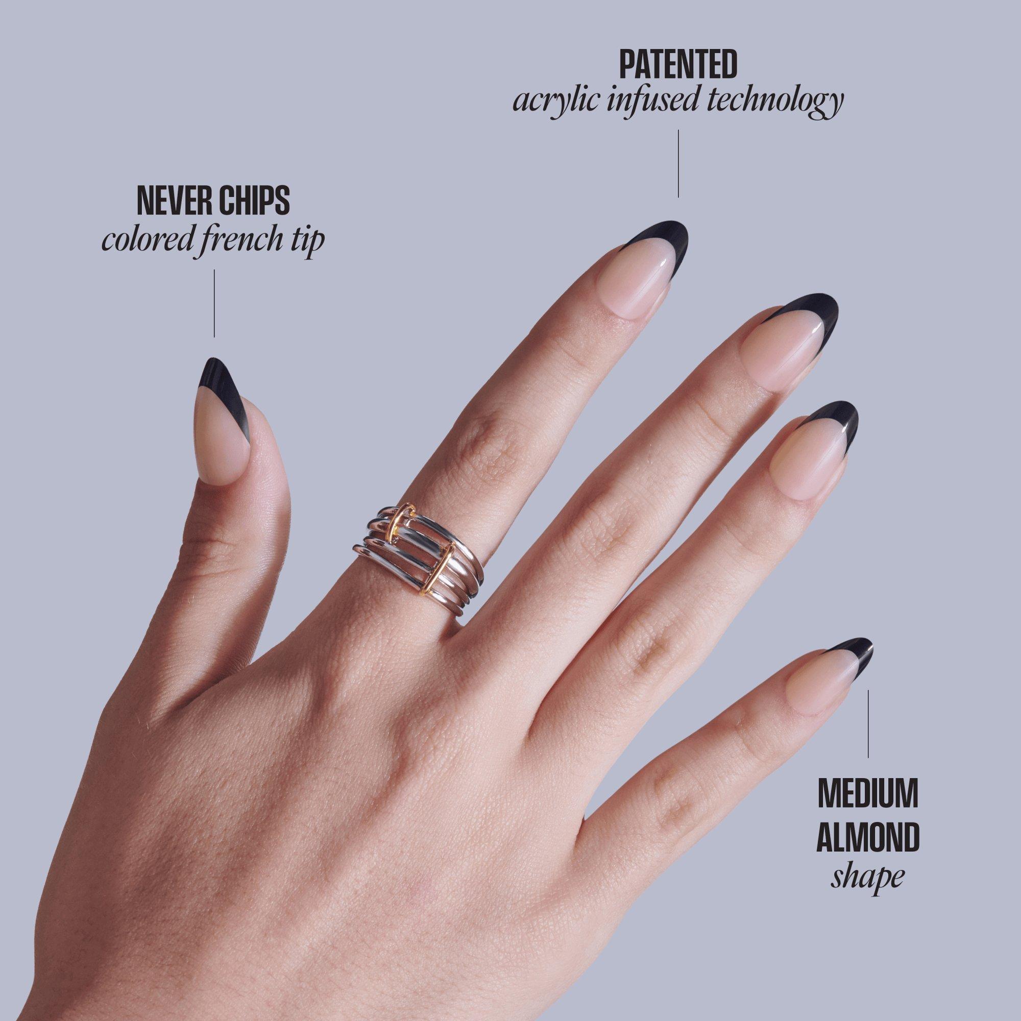 NEW Look. MORE Nails. BETTER Fit! Keep it classic in KISS CORE French Press On Nails. These nails feature chip-free, acrylic-infused technology that ensures long-lasting color and durable wear. These nails provide timeless French tips in natural shapes and lengths, perfect for every day.
