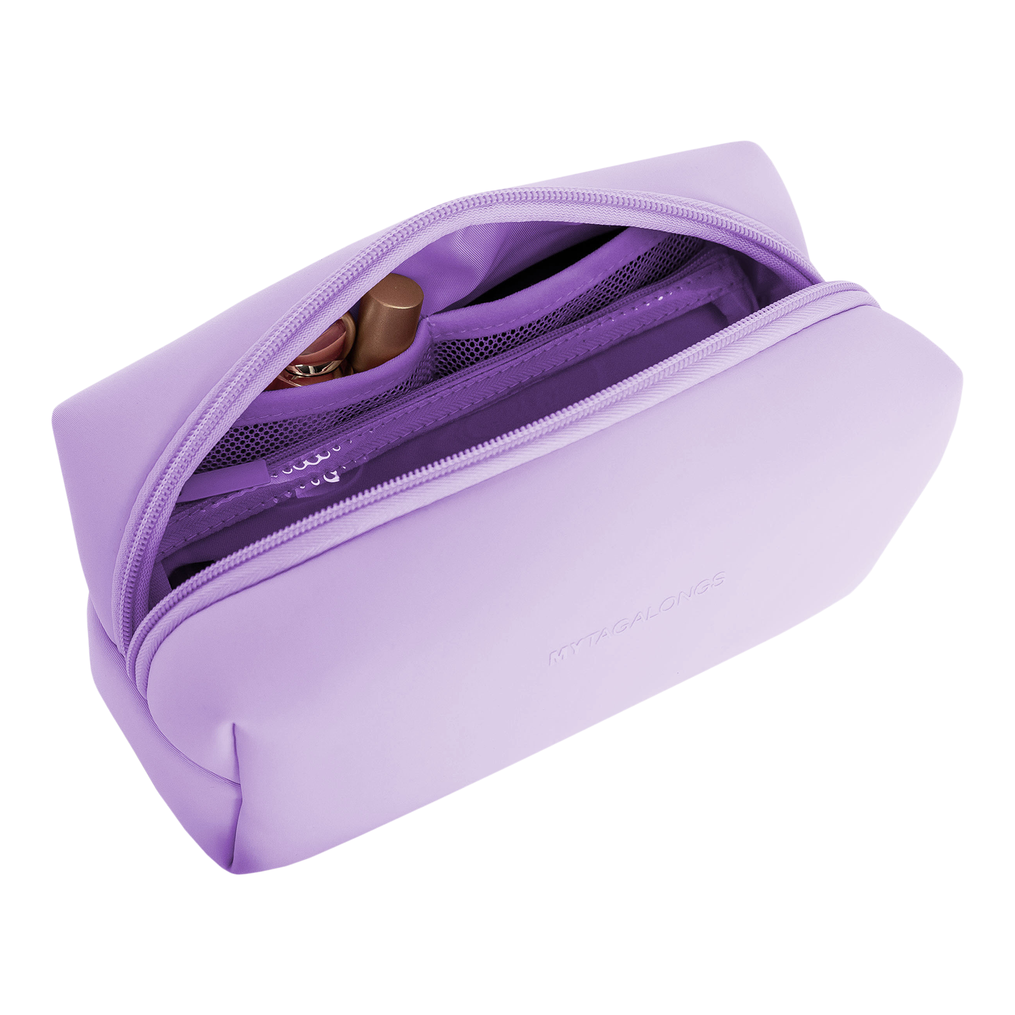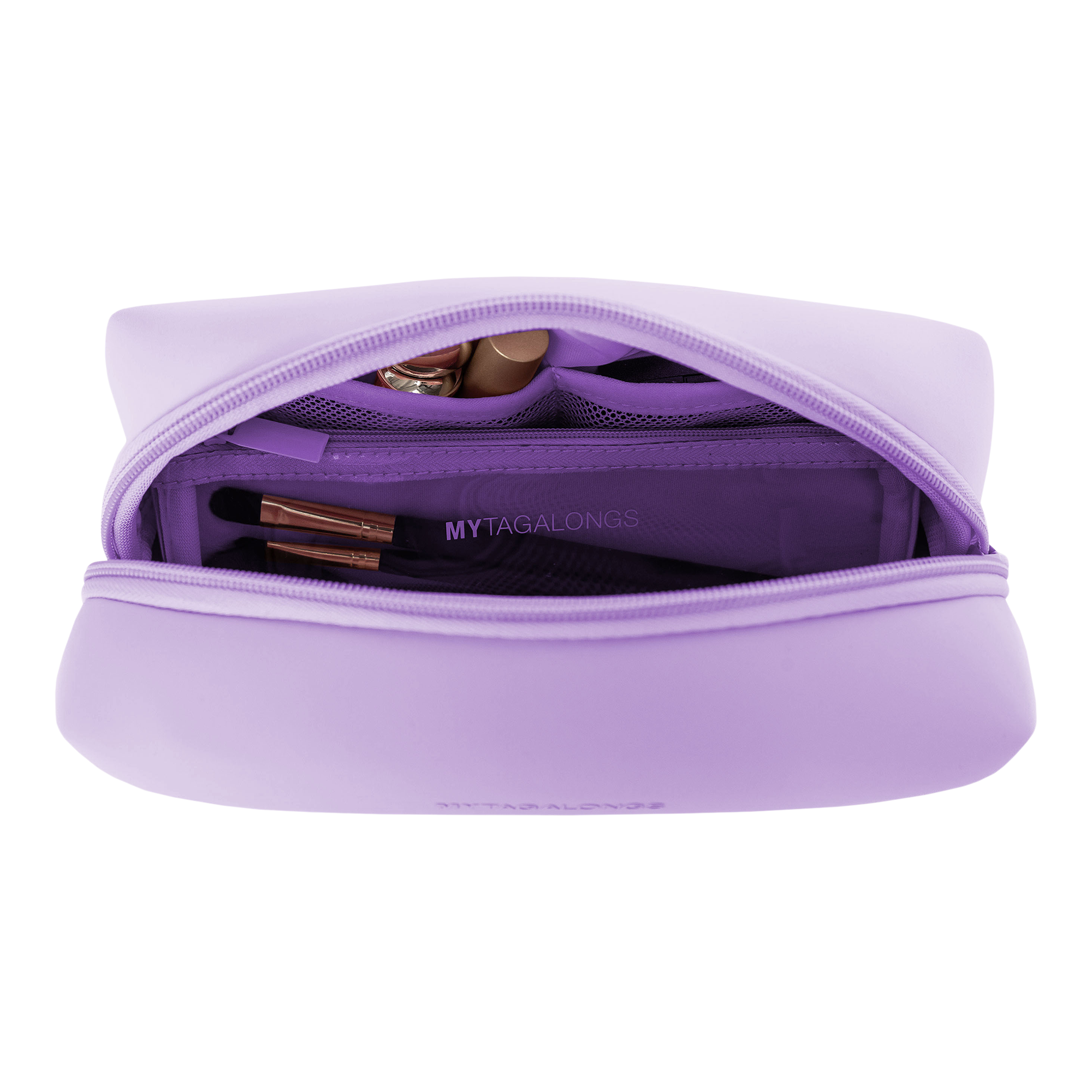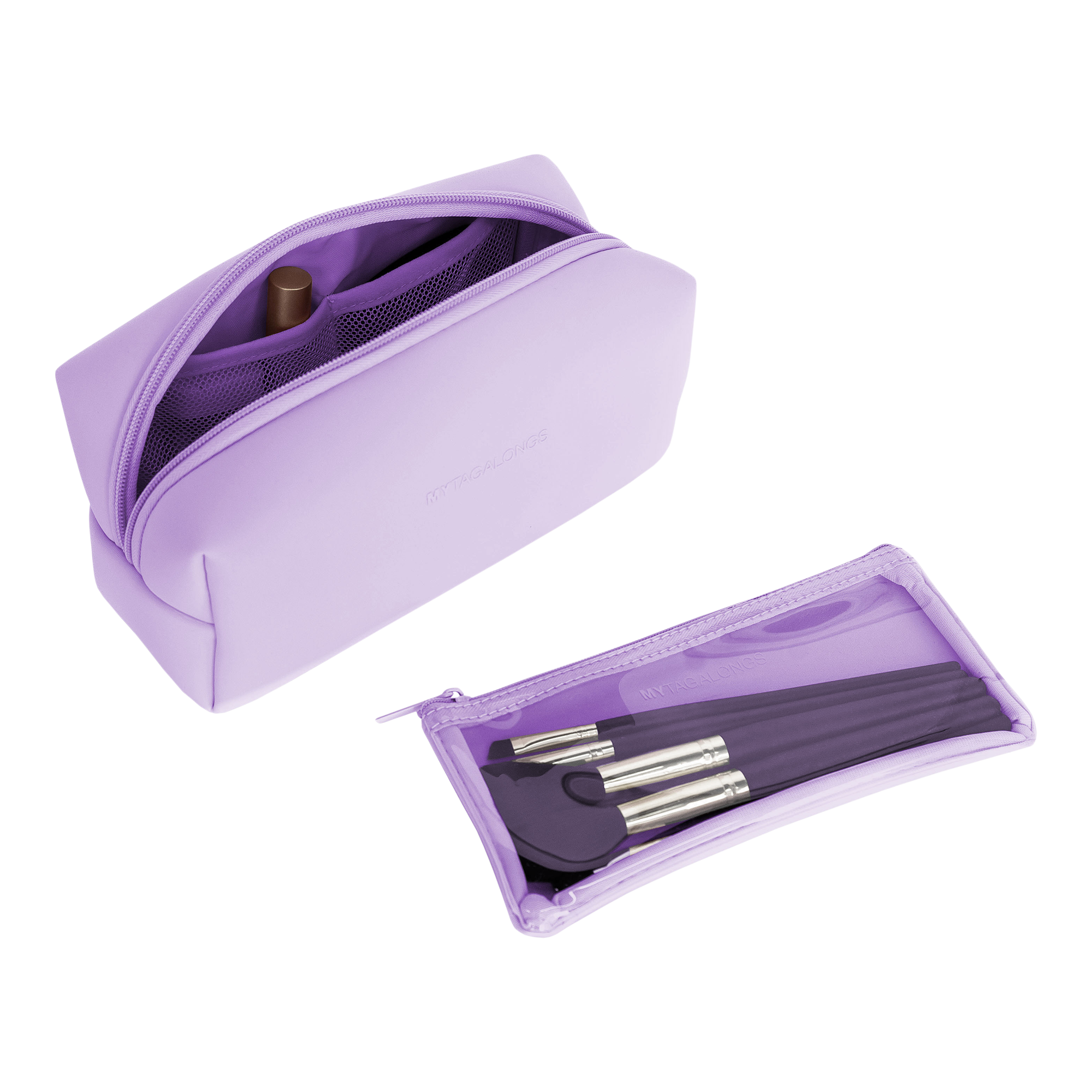 MYTAGALONGS Cosmetic Case with Brush Pouch can fit not only your lipsticks, blushes, pencils but also your makeup tools, sponges and brushes. Features inner pockets and a clear brush pouch to keep it all organized and clean.