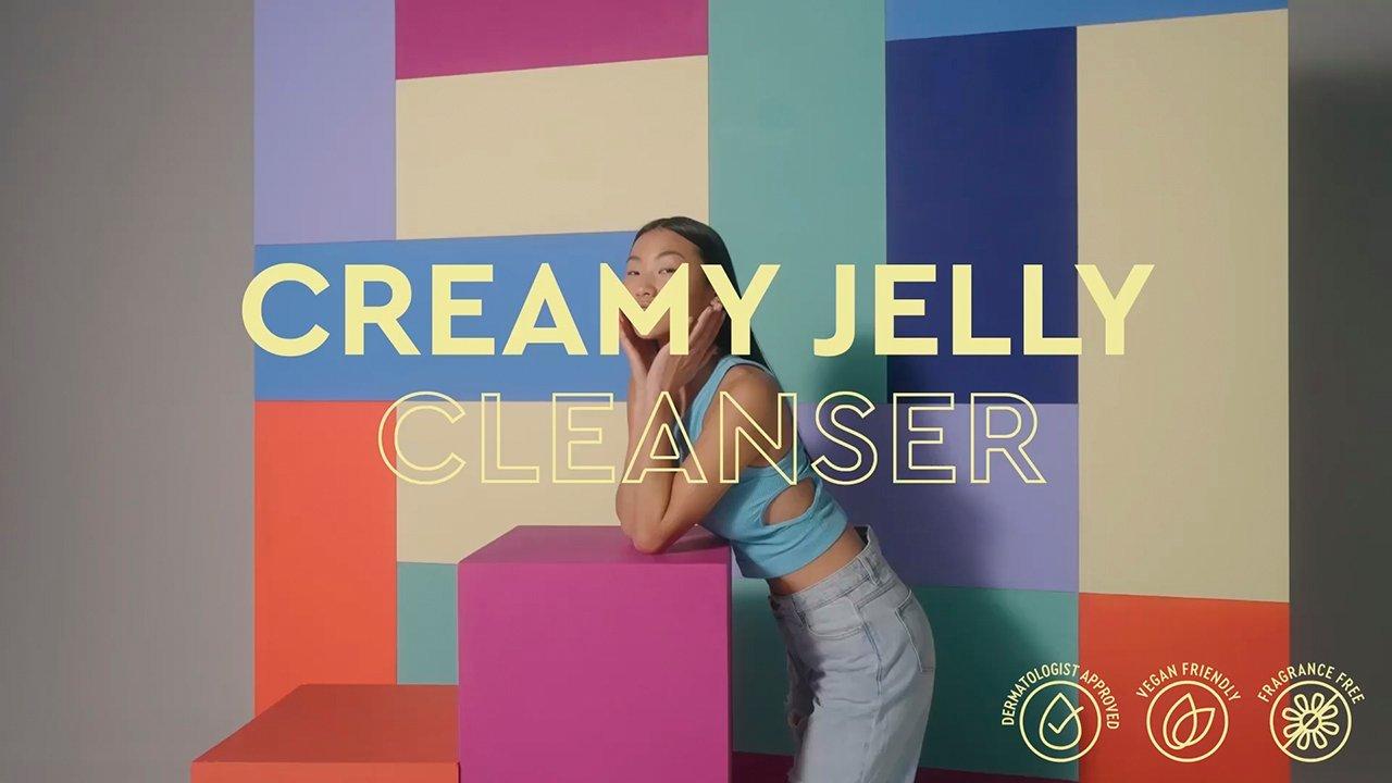 BYOMA's ultra hydrating Creamy Jelly Cleanser gently + effectively breaks down dirt, excess oil + makeup without breaking down your skin barrier.