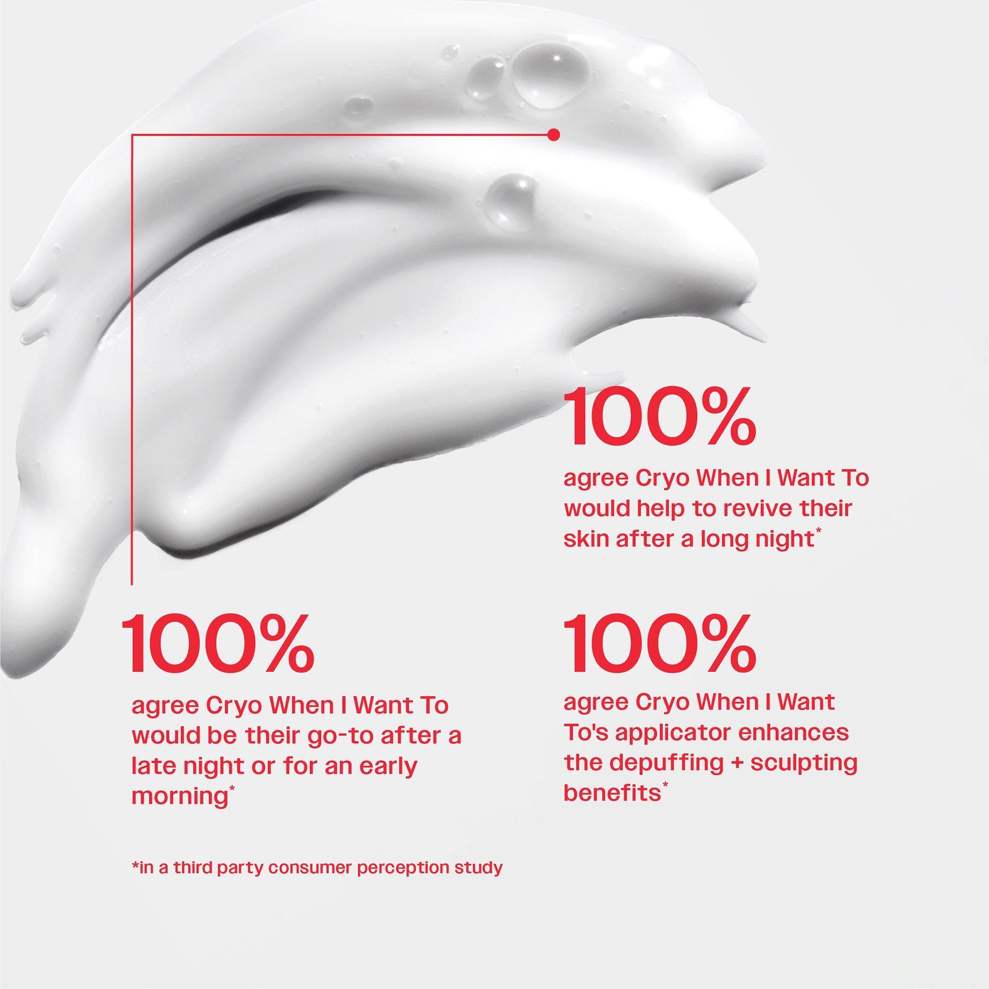 Hit snooze on puffiness. Meet your new depuffing + sculpting ride-or-die: Party of You Cryo When I Want To Depuffing Face + Eye Roll-on Serum. A lightweight serum that calms redness + visibly depuffs with help from a built-in, cooling metal roller. Bonus: Stash in fridge for cryotherapy-level chill.