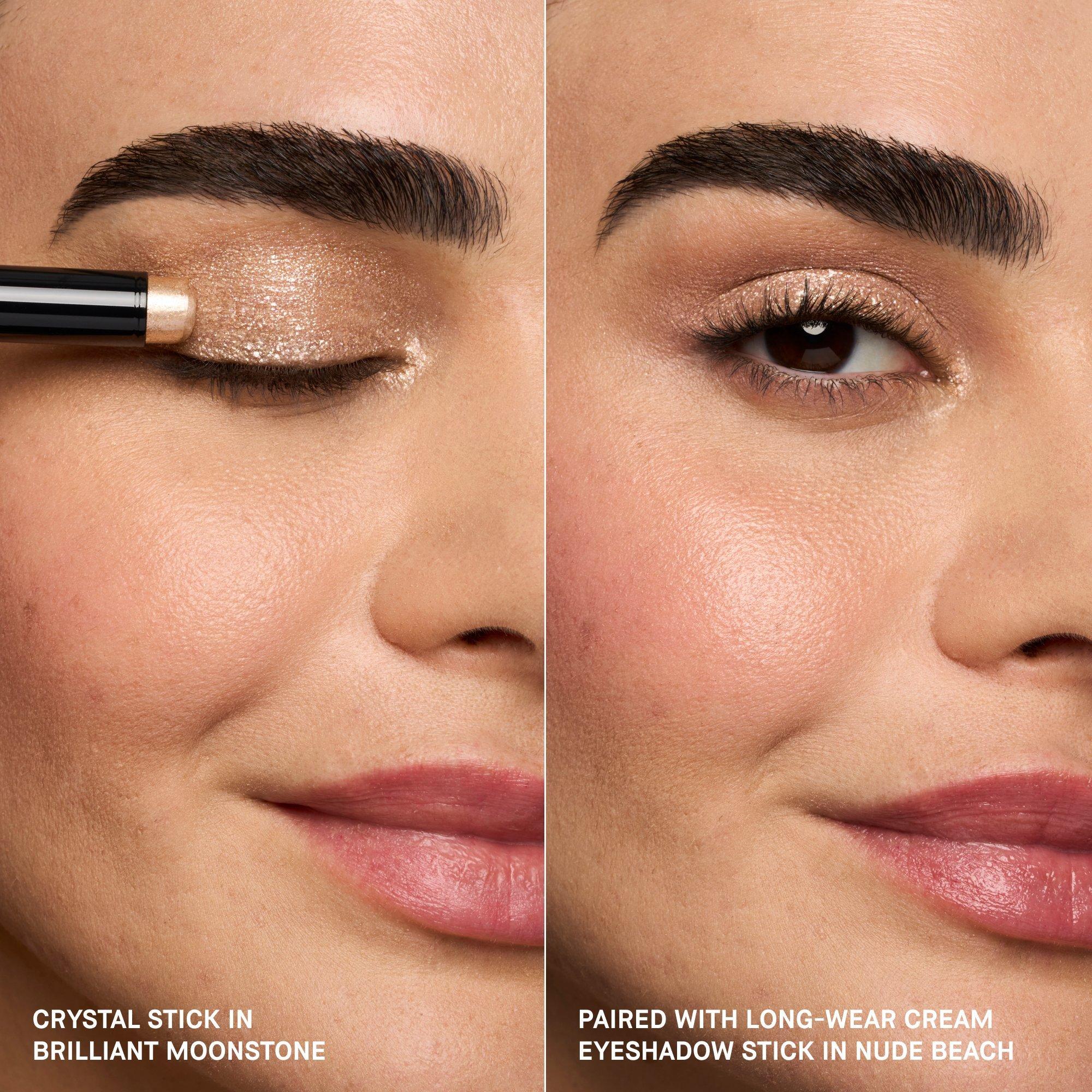Bobbi Brown Crystal Eyes Eyeshadow Stick glides on with pearlescent pigments and a dewy touch for effortless sparkle you can wear anytime—no fallout or fuss.
