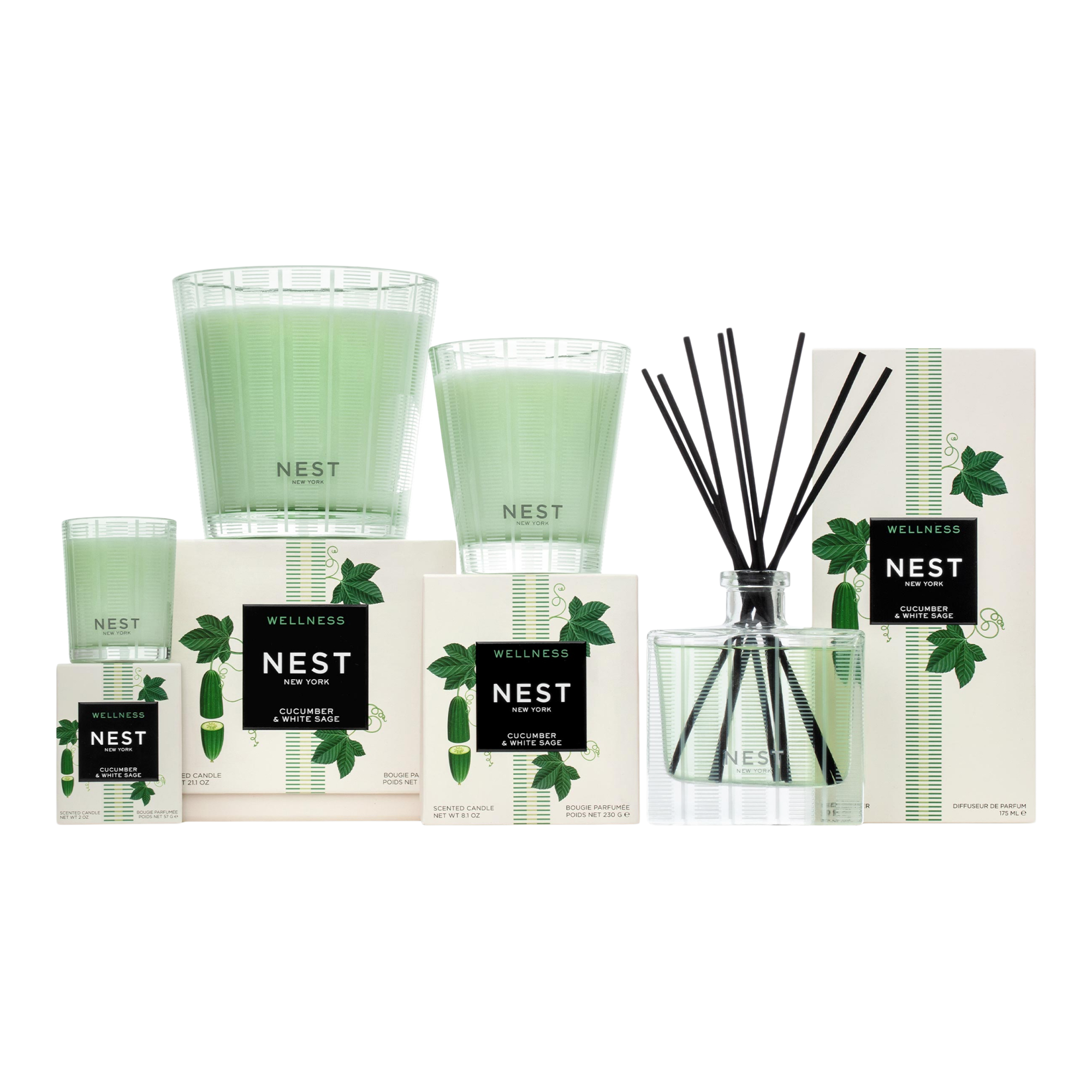 De-stress and refresh with notes of cucumber and white sage wrapped with hints of lavender, a wellness fragrance that helps create a sense of calm and renewal.