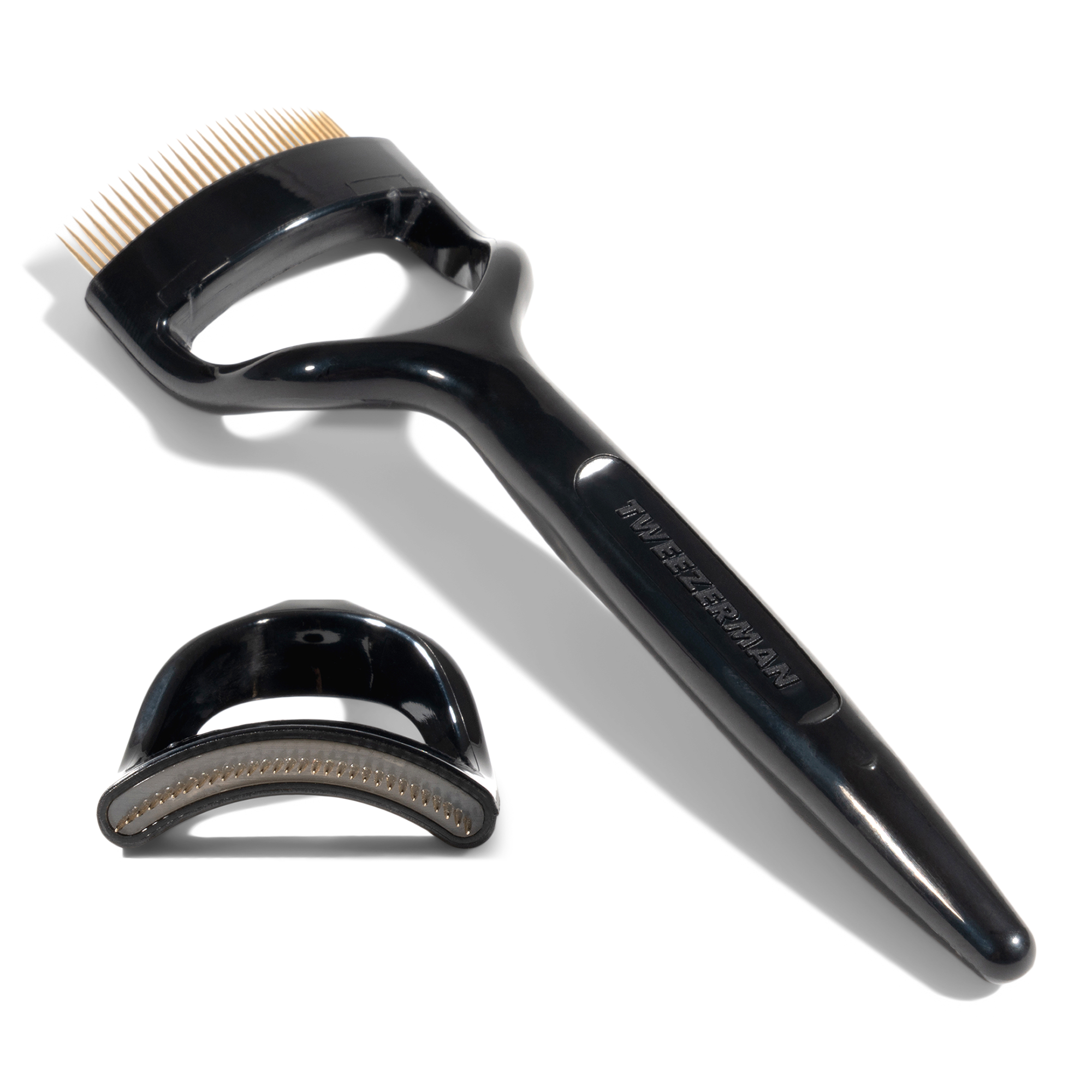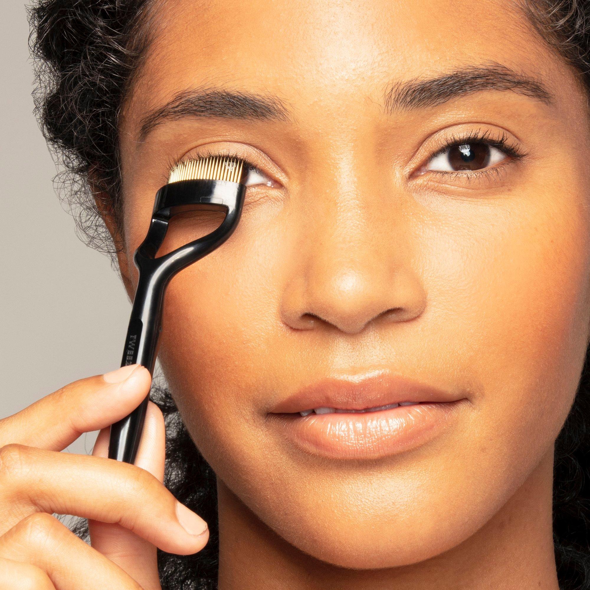 Crafted for diverse eye shapes, Tweezerman's Curl 38 Lashcomb glides through lashes to remove excess mascara, leaving them separated, defined and clump free. Designed with a tailored curved base ideal for almond shaped eyes.