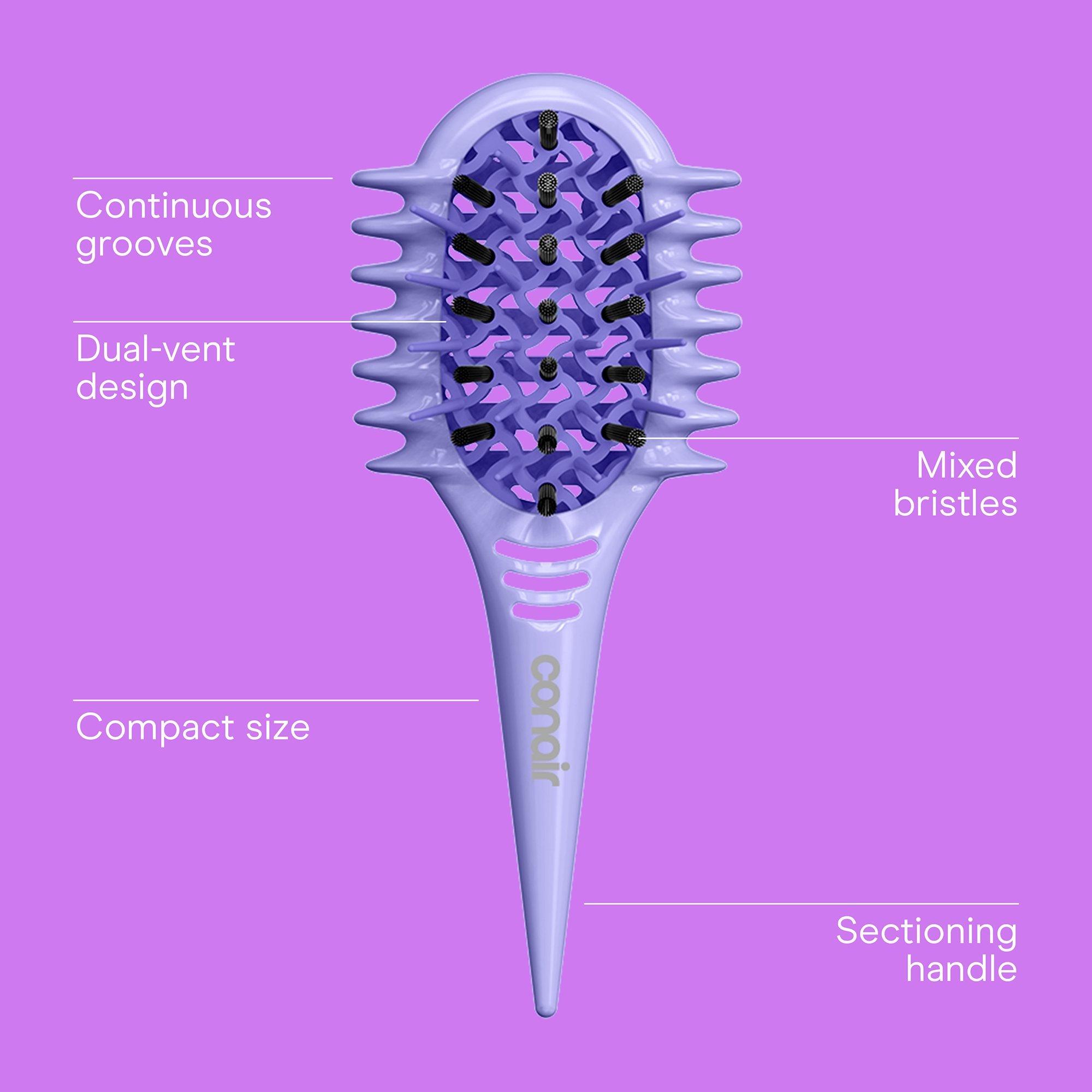 The Conair Curl Define Pro Detangler Brush is designed for loose curls to gently detangle, smooth, and define. Continuous grooves smooth and separate curls, vents help remove excess water and product, and mixed bristles gently detangle with no pulls to reduce frizz and breakage.