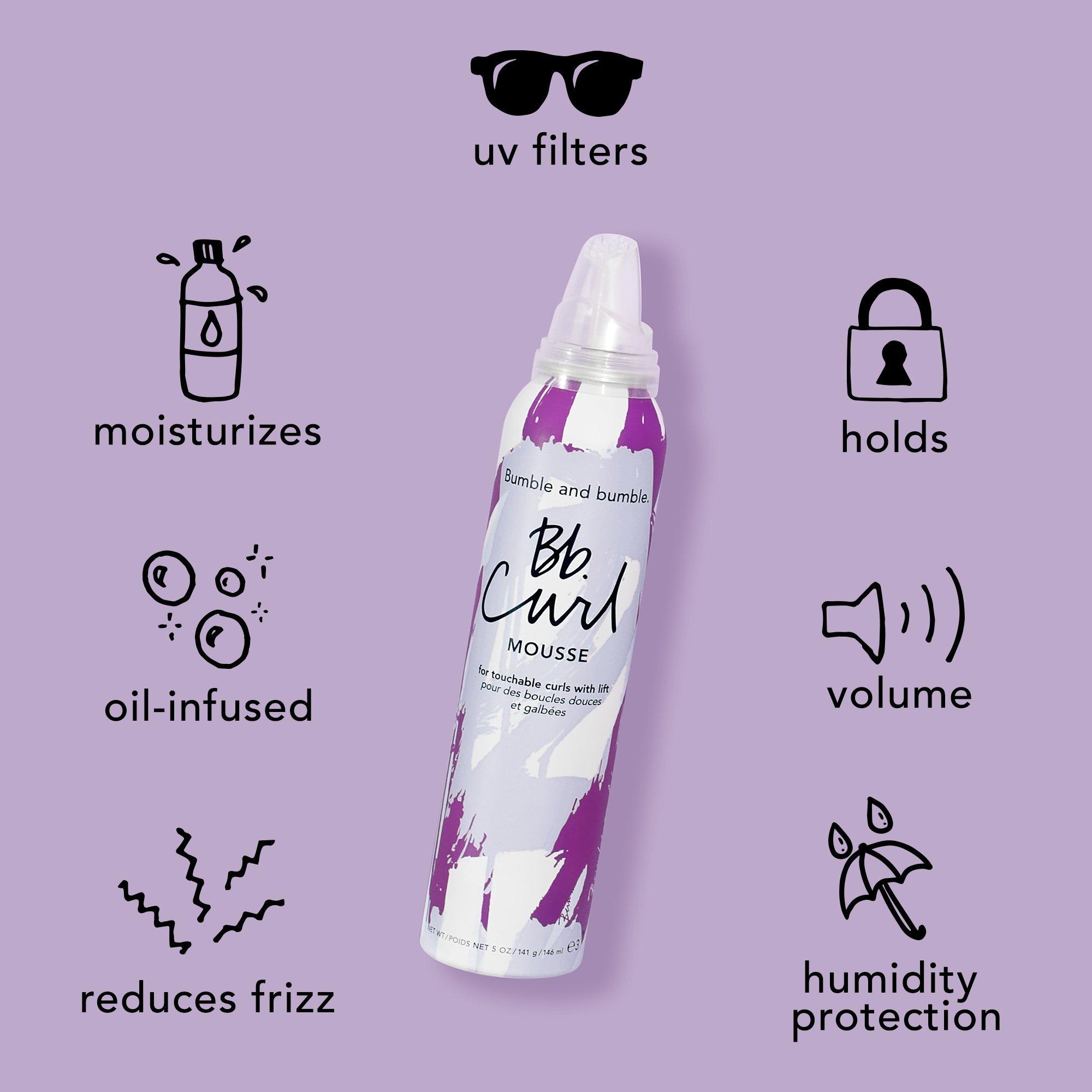 Bumble and bumble Curl Defining Hair Mousse is a lightweight hair mousse for curly hair that creates voluminous, bouncy curls (that last). Enhanced with a rich blend of oils and butters, it also deeply moisturizes hair, reduces frizz, and protects against humidity to keep curls lush and lifted.