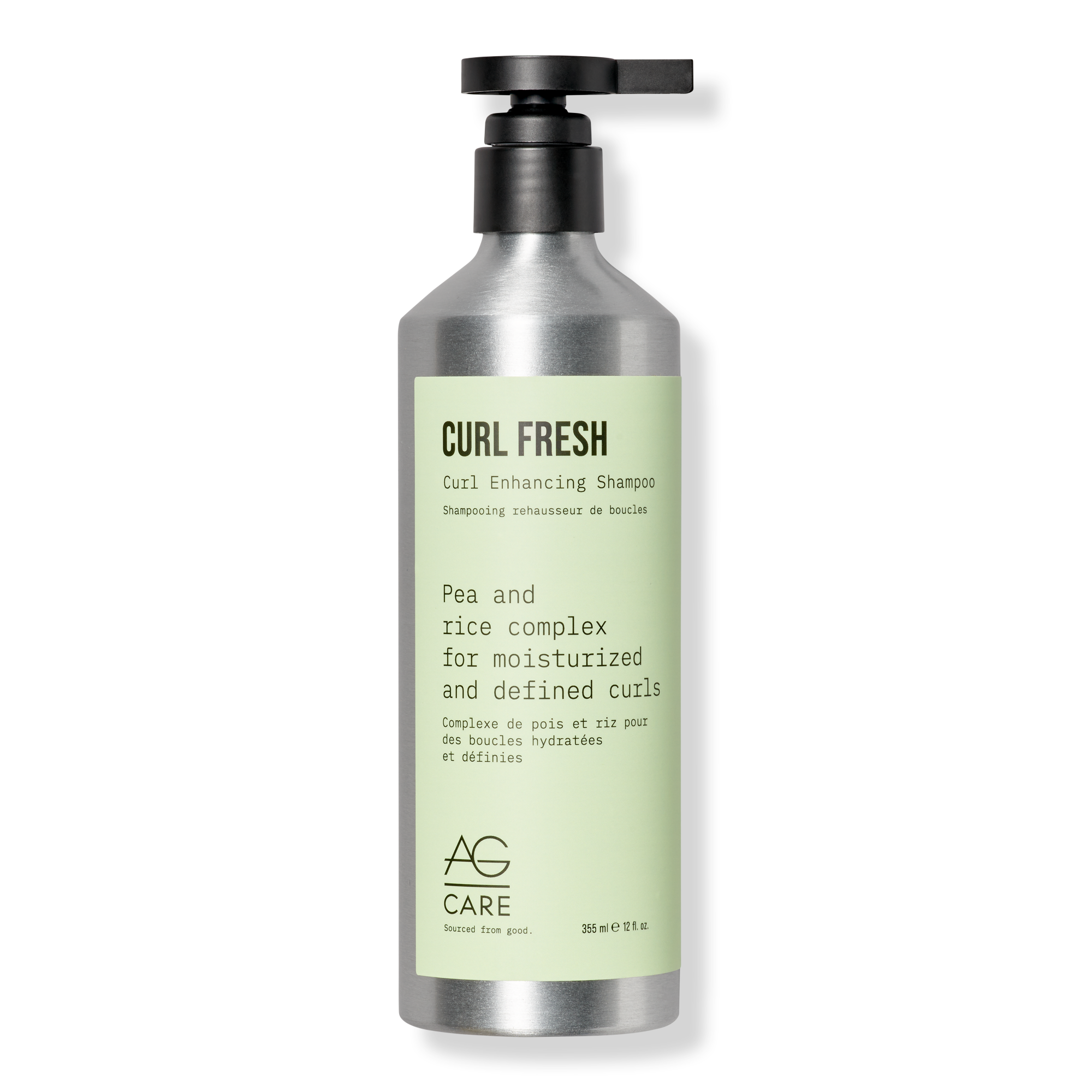 Natural, sulfate-free cleansing agents gently refresh hair and scalp while pea and rice amino acids increase moisture and curl retention, keeping curls smooth and defined in AG Care silicone-free, vegan and 98% Plant-Based Essentials Curl Fresh Curl Enhancing Shampoo.