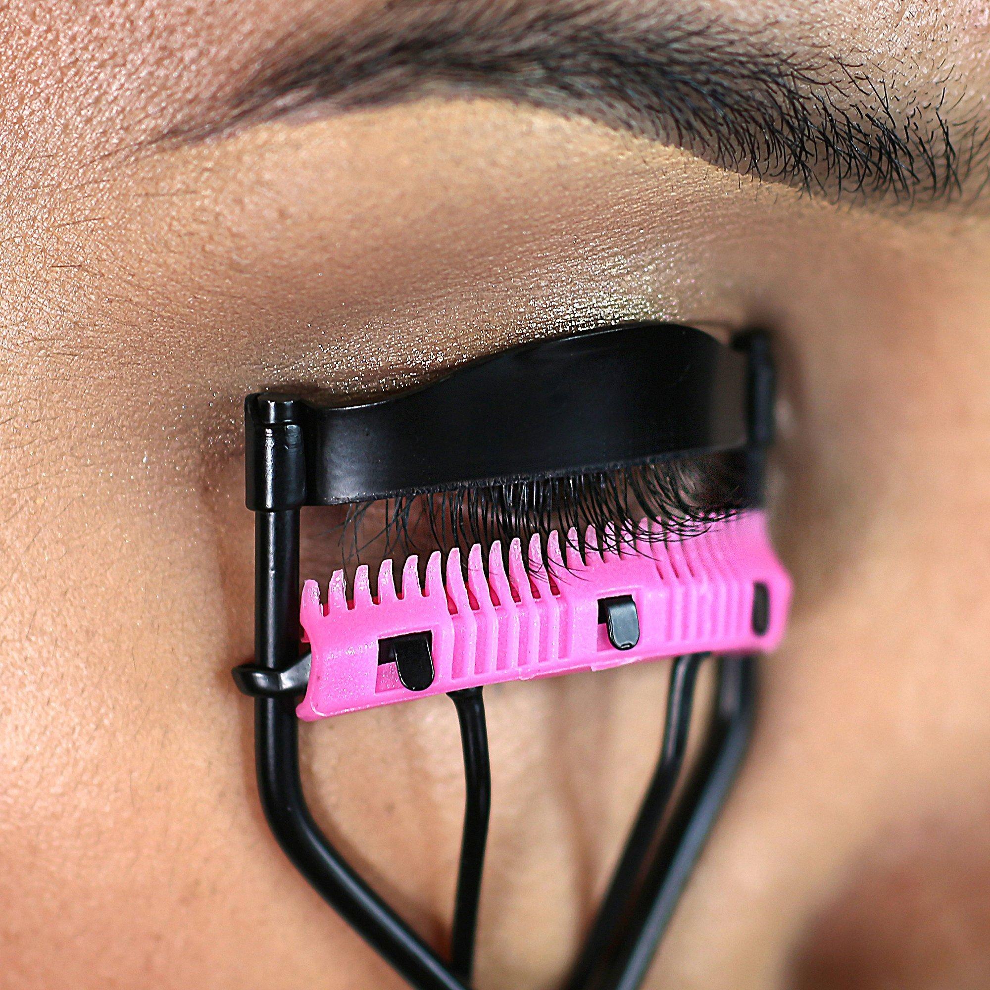 Start with clean, dry lashes before applying mascara. Tilt your head back slightly and look downward. Position the Curl \& Lift-Up Eyelash Comb Curler at the base of your upper lashes. Gently squeeze and hold for 5--10 seconds, pulsing if desired. Repeat if necessary, then finish with mascara for added lift. Pro Tip: For maximum curl and hold, follow with your favorite J.Cat Beauty mascara.