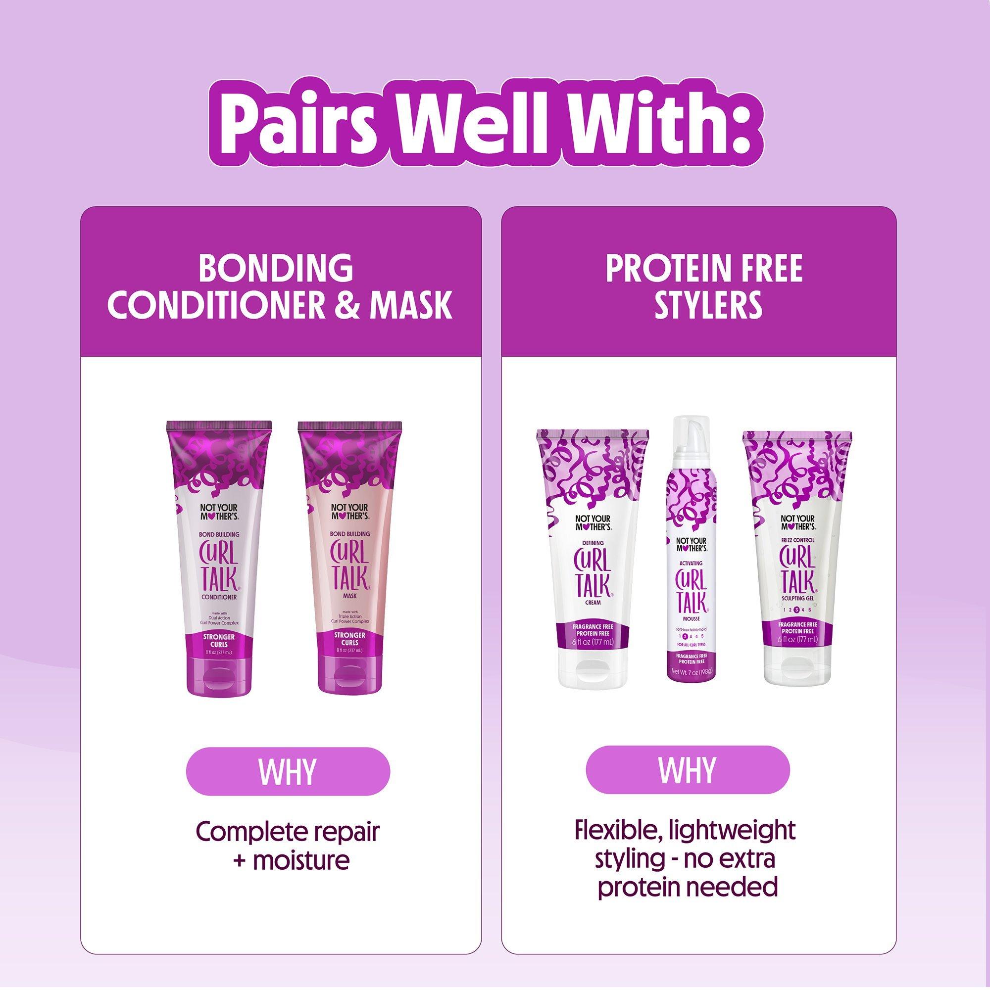 Keep your curls healthy with Not Your Mother's Curl Talk Bond Building Shampoo, a silicone-free shampoo that gives you a gentle cleanse while delivering bond repair power to help strengthen your strands from root to tip. Ready for less breakage, less frizz and more curl definition?