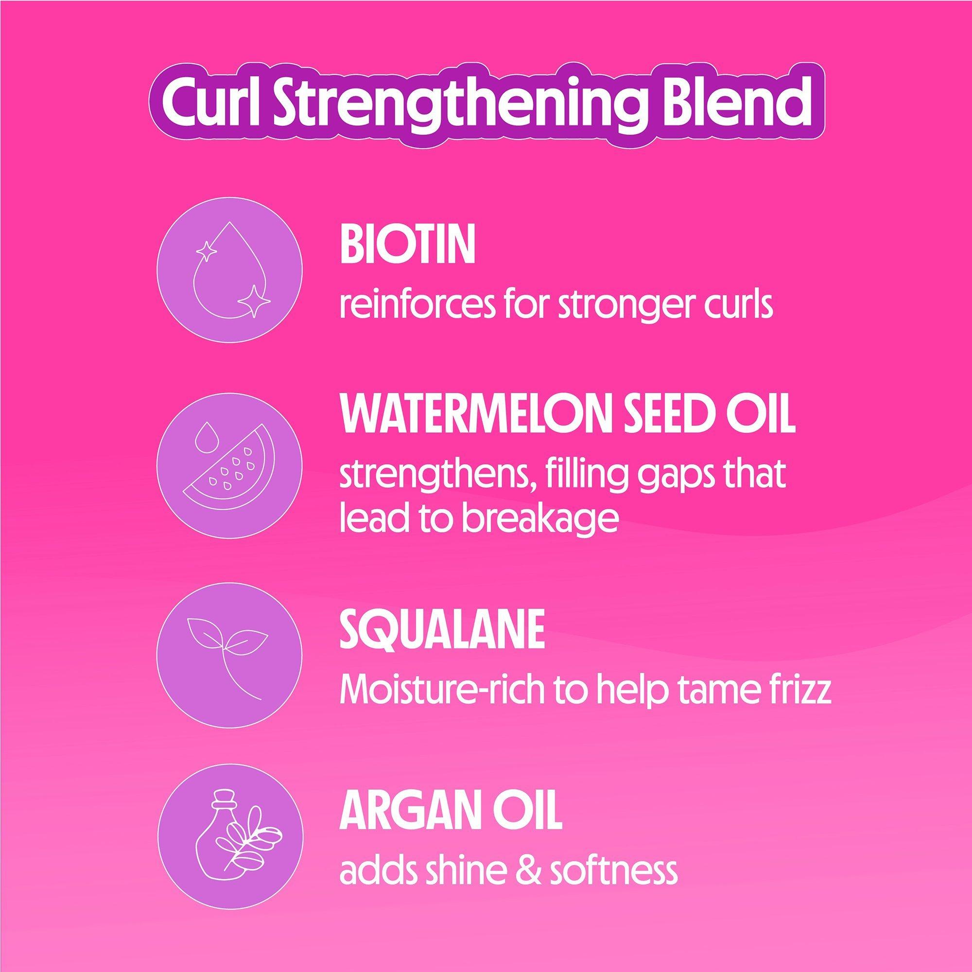 • Biotin builds strength for healthier curls