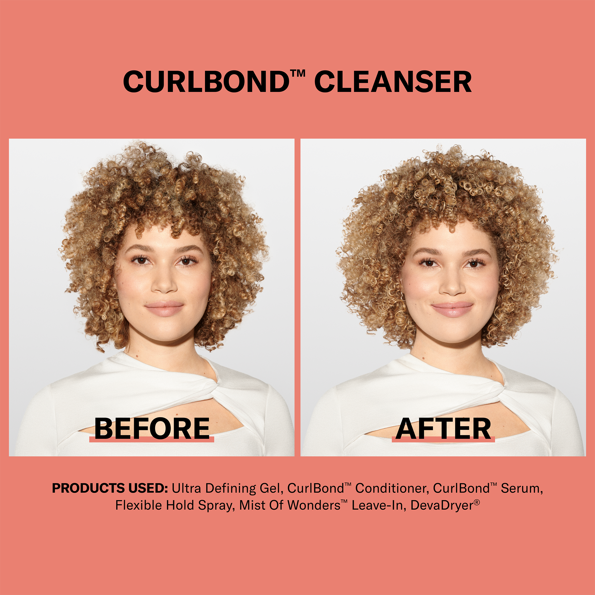 DevaCurl's CURLBOND Re-Coiling Mild Lather Cleanser with its patented CurlBond Complex re-coils damaged curls and works from the inside out to help re-link broken bonds, improve strength and protect from future damage. It maintains shine and leaves curls healthy-looking with enhanced definition.