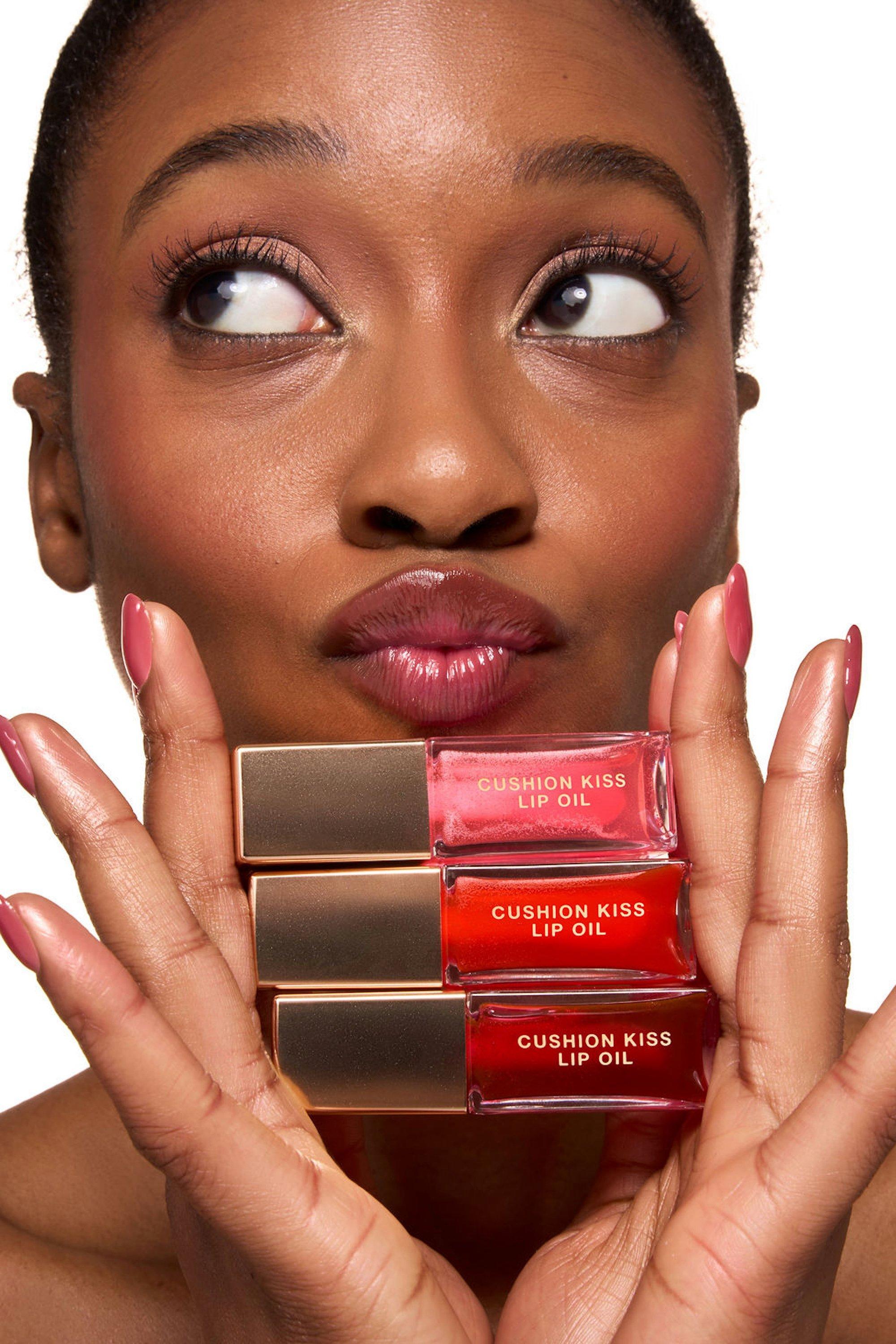 Ultra-plush lip oil wraps lips in long-lasting comfort, hydration and high shine with a custom pop of juicy pH-adjusting color.