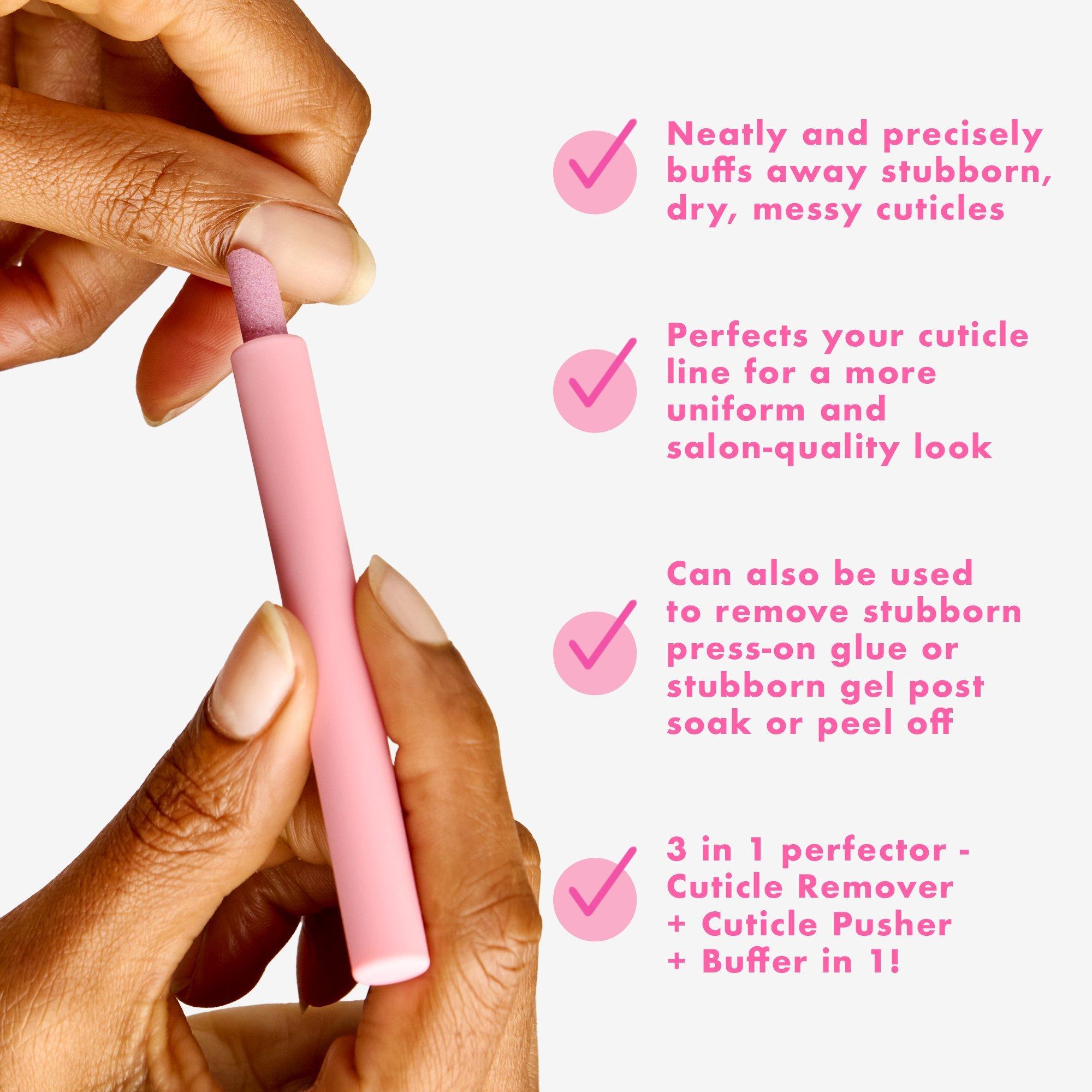 Perfect cuticles are possible. Neatly and precisely buffs away stubborn, dry, messy cuticles and perfects your cuticle line for a more uniform and salon-quality look.