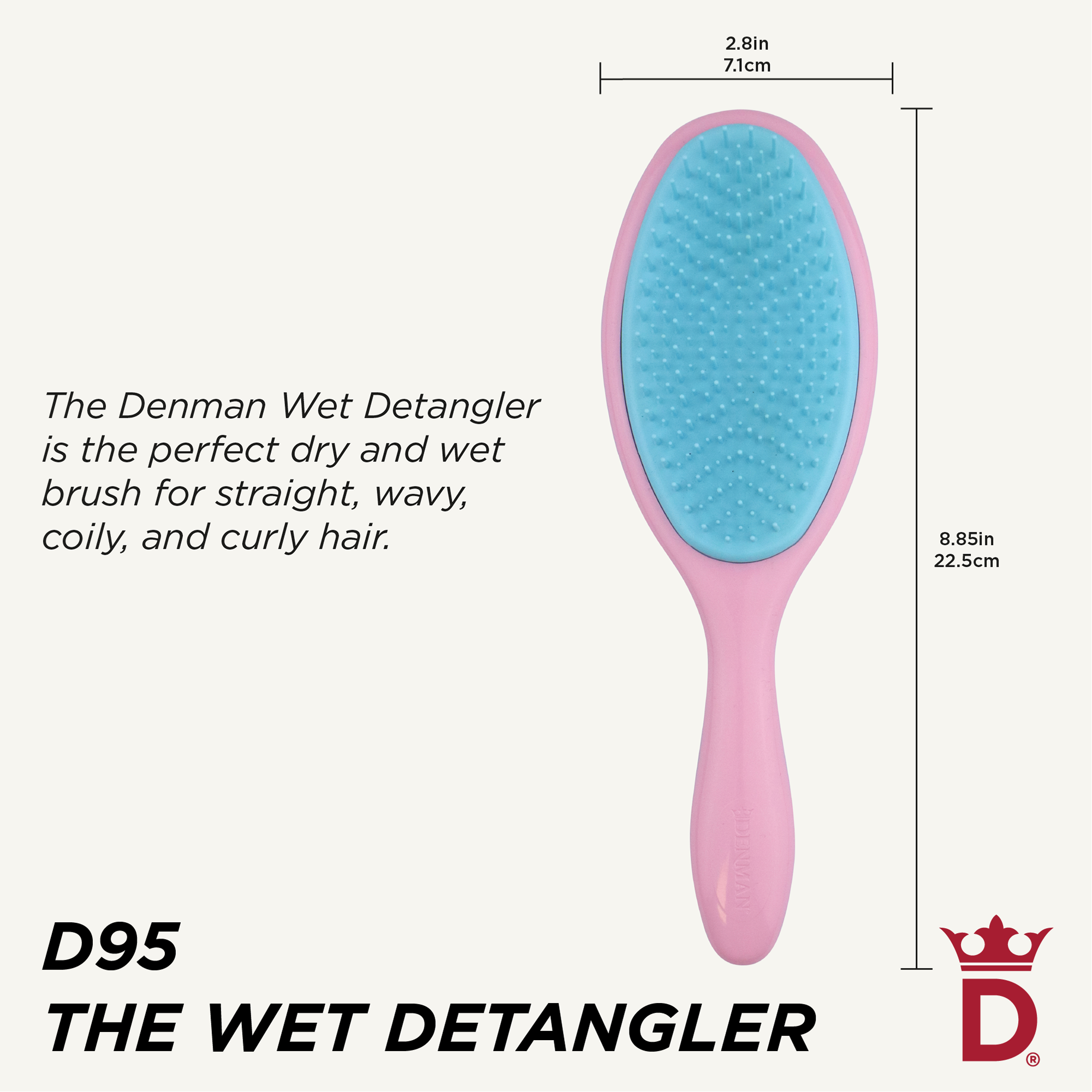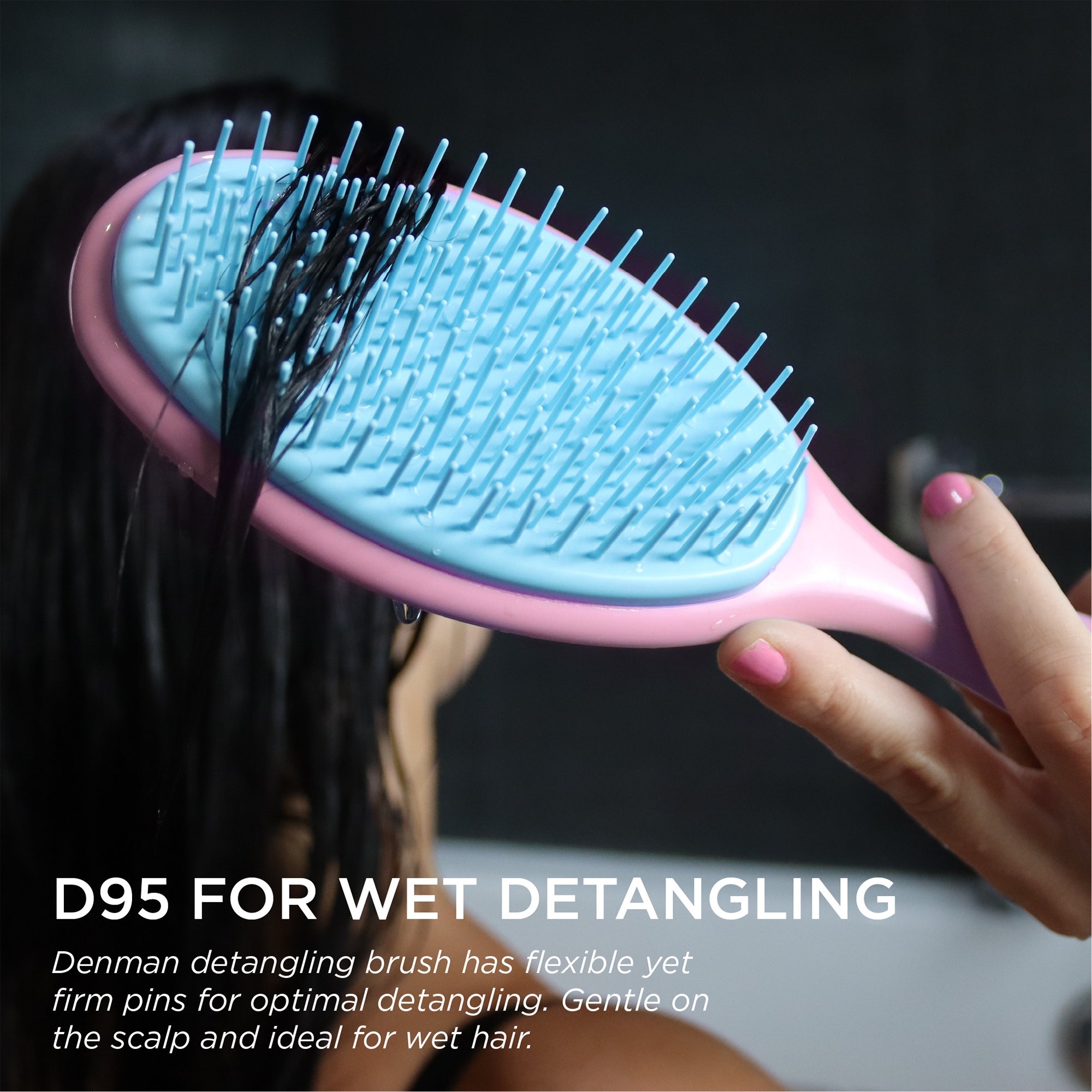Denman D95 Wet Detangler for wet detangling and product distribution.