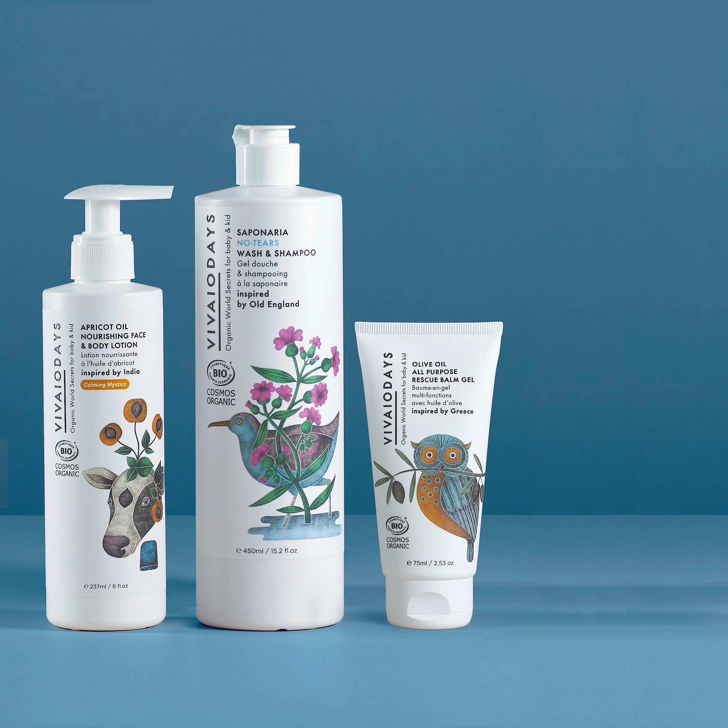 Daily 3-Step Trio cleanses, hydrates and soothes to help protect sensitive, eczema-prone skin from everyday irritants. This gentle routine keeps baby’s skin calm, soft and comfortable day after day with wash, lotion and rescue balm-gel.