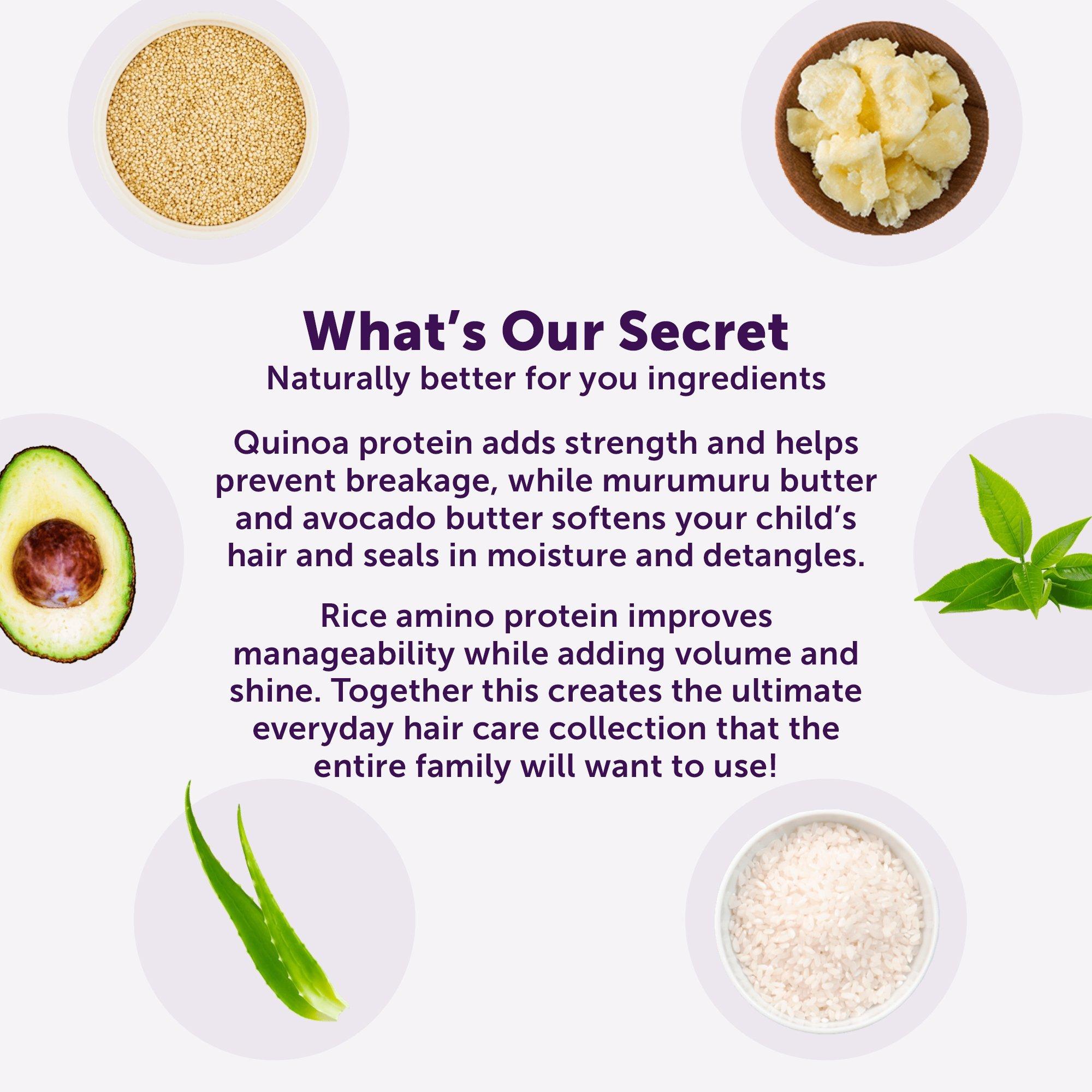 • Naturally Derived Ingredients: Fairy Tales only use the most honest ingredients for your kids. Quinoa protein adds strength and helps prevent breakage, while murumuru butter and avocado butter soften kids hair and seal in moisture.