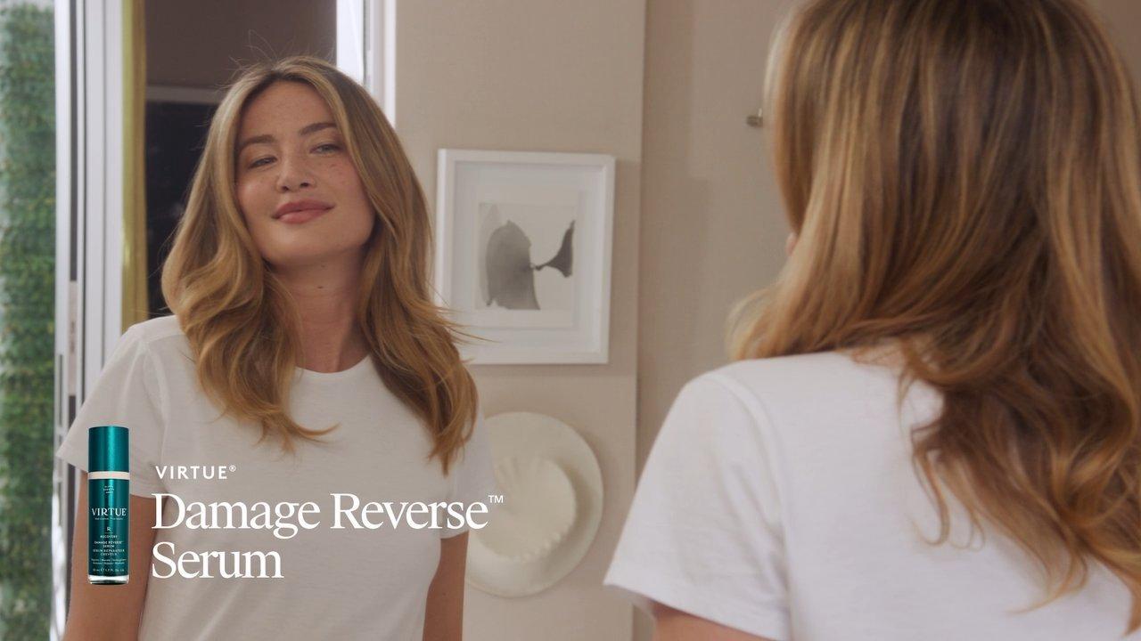 Virtue Damage Reverse Hair Serum is the only inside-out hair repair solution to both reverse and fight future damage, reinforce hair's strength, and reduce breakage by 2x with Virtue's highest concentration of reparative Alpha Keratin 60ku.