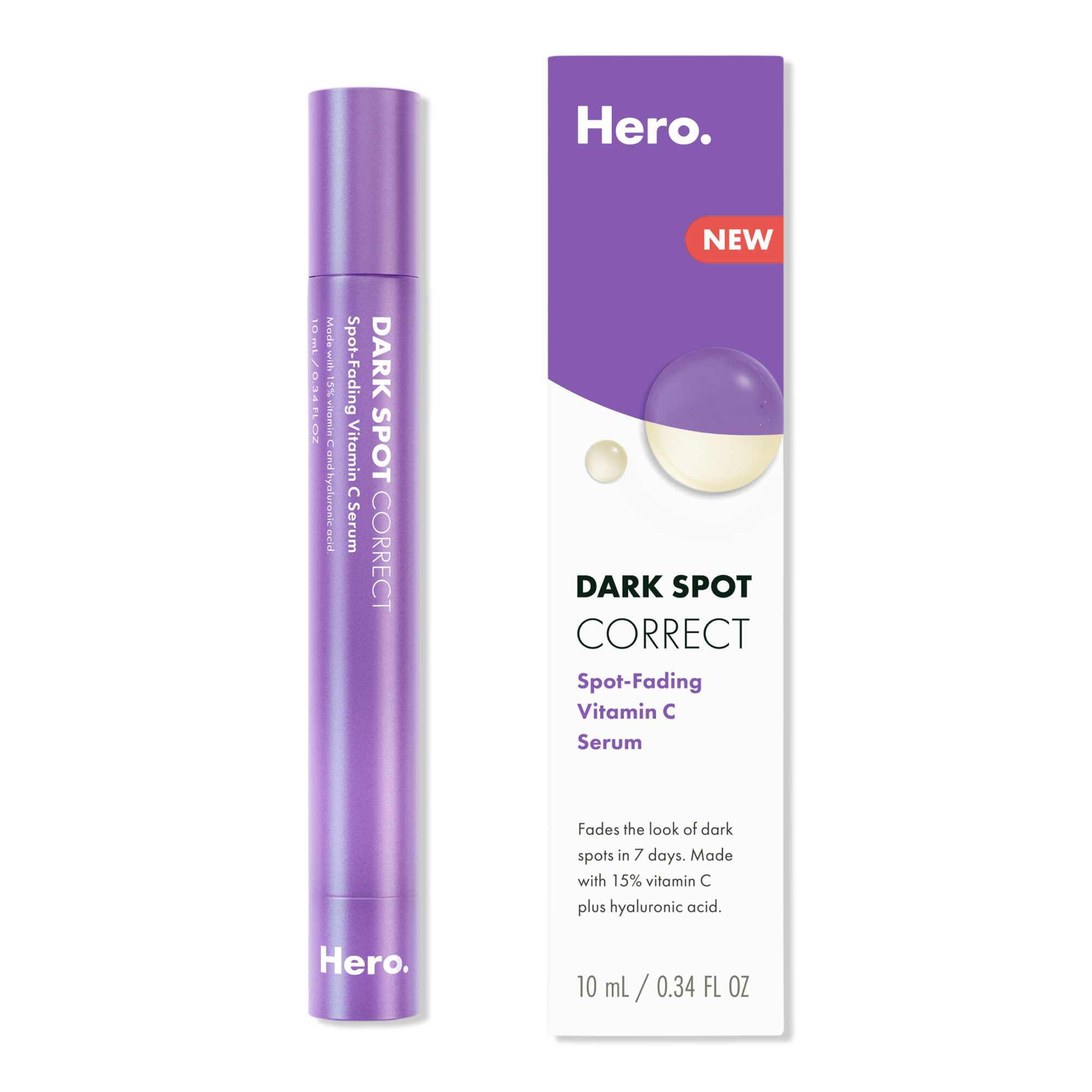 Hero Cosmetics Dark Spot Corrector fades the look of post-blemish marks in just 7 days. Starring 15% vitamin C plus hyaluronic acid –and totally invisible on skin. Featuring a twist applicator and stainless-steel rollerball tip so you can apply it on-the-fly and handle lingering dark spots any time.