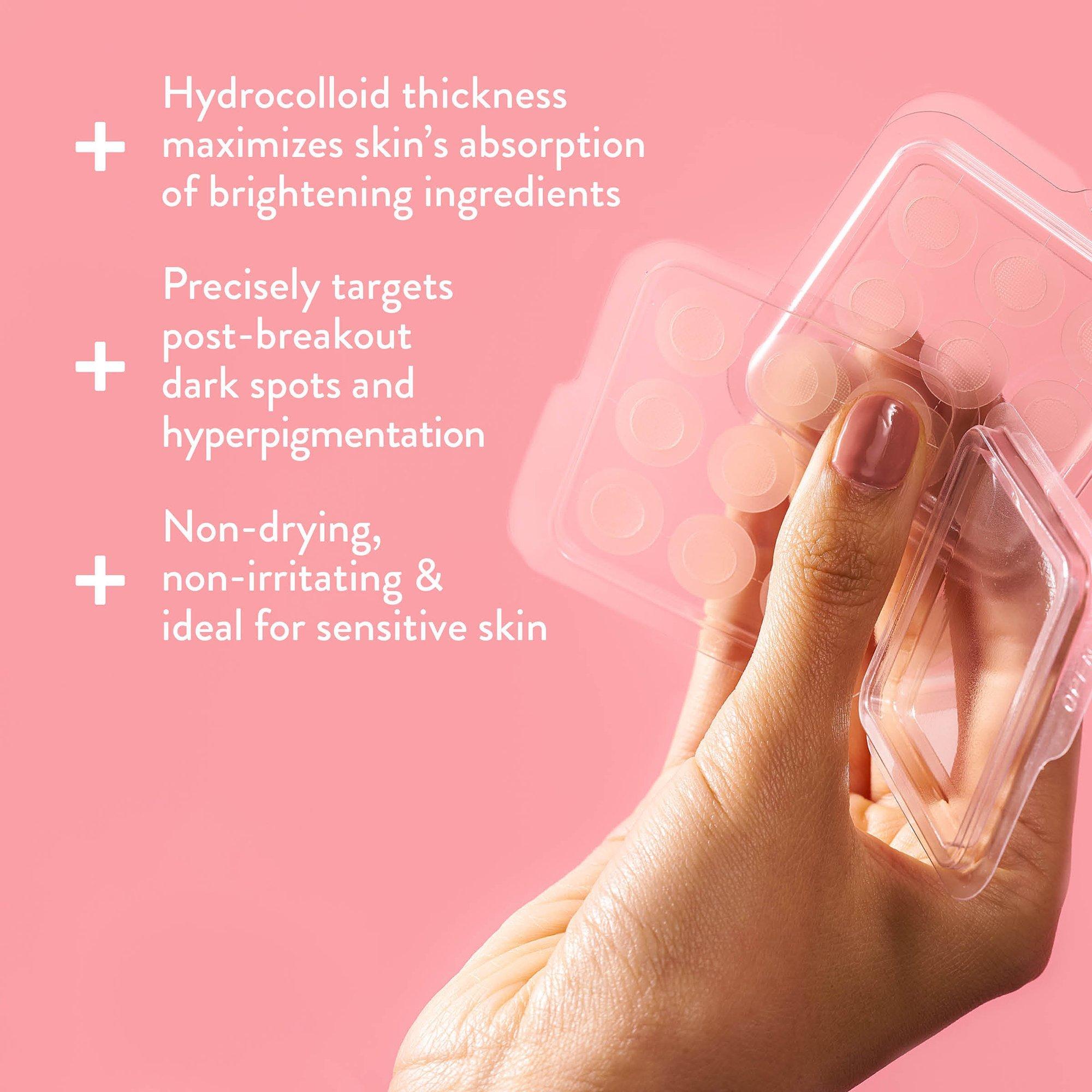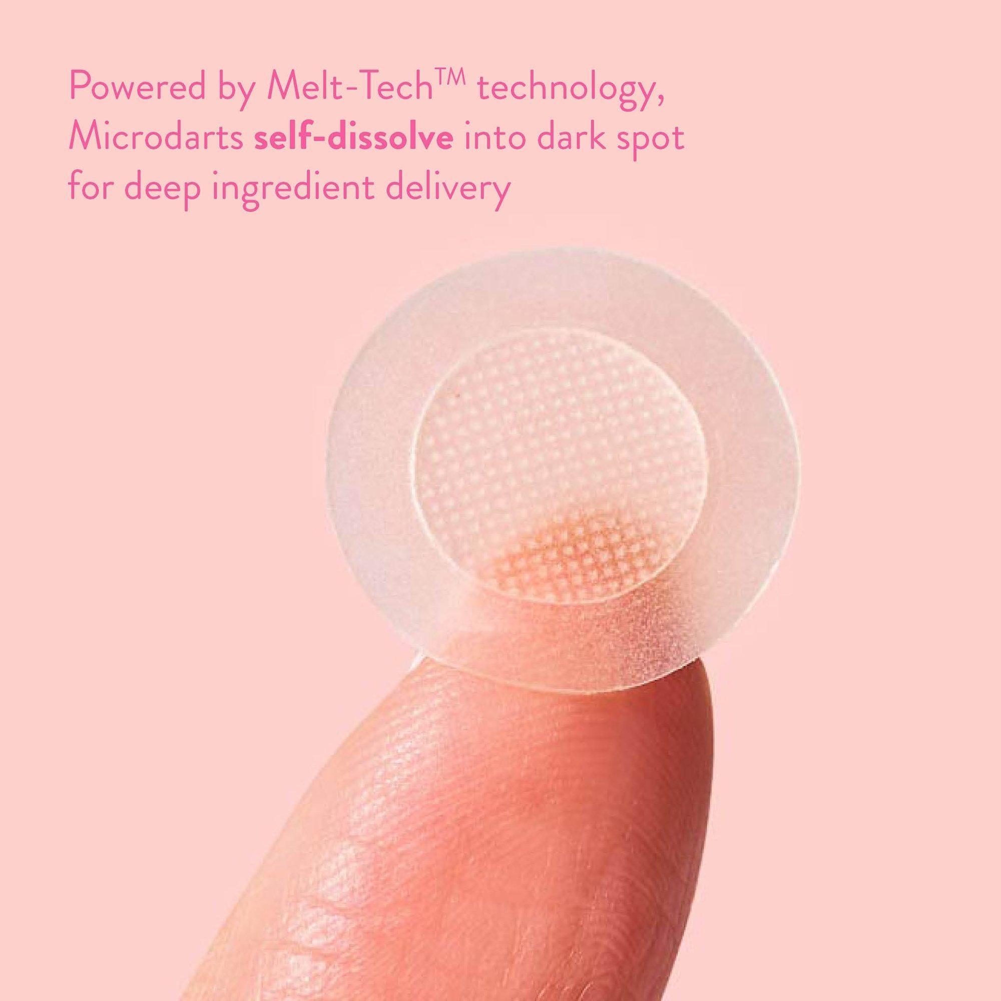 Cleanse area to be treated. Adhere patch over the area. Microdarts self-dissolve into skin within 2 hours, saturating the area with beneficial ingredients to improve the appearance of your discolored spot. After 8 hours, remove by gently peeling back and discarding. Cleanse the treated area, and apply another patch if desired. Can be applied every 8 hours as often as needed. No-color, transparent patches can be worn overnight, or under makeup.