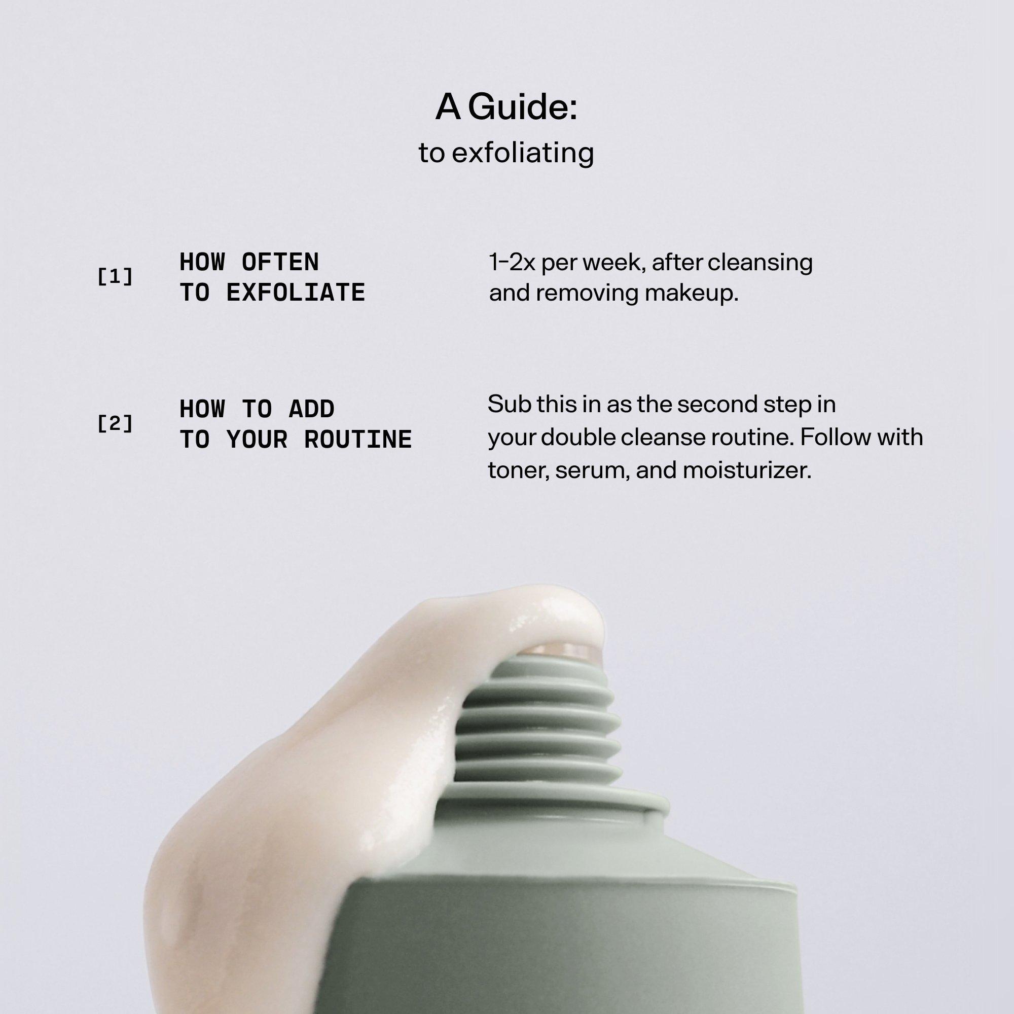 Using circular motions, gently massage a quarter-size amount into wet skin for 60 seconds, rinse thoroughly with cool water, and pat dry. Use on the entire face (avoiding eye area) AM or PM 1-2 times a week, after cleansing and/or removing makeup.