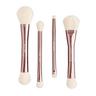Petite, portable and practical, you can take this travel sized dual-ended brush set with you wherever you go. Four dual ended brushes with eight different brush heads cover all of your makeup needs. Set comes with a vegan leather case. All items are made from recycled plastic and aluminum.