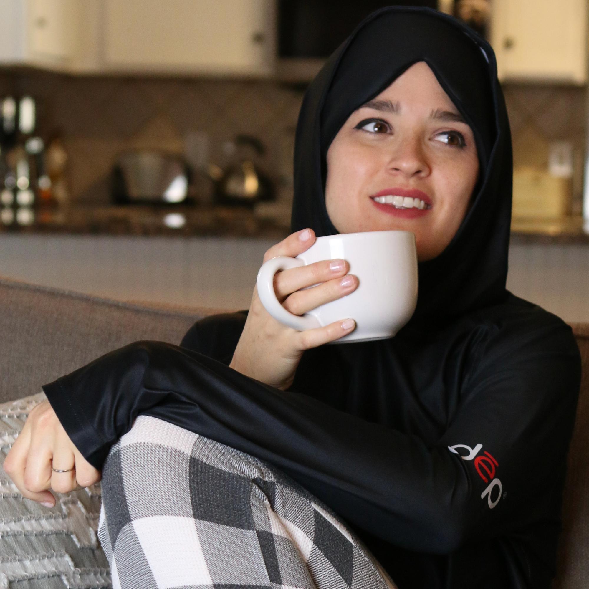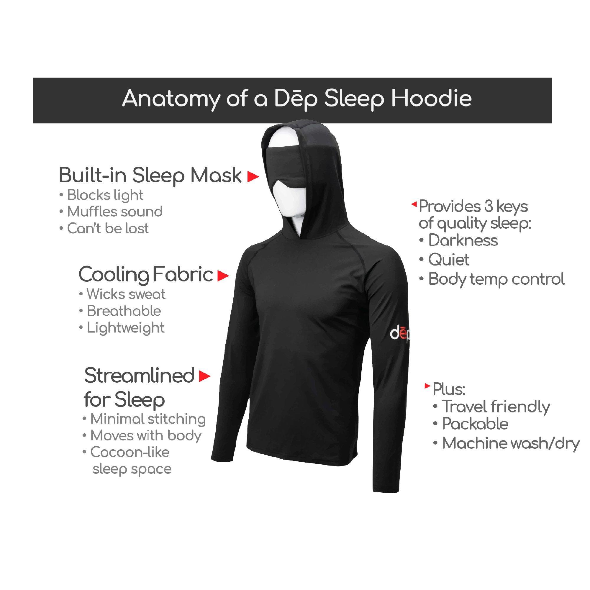 Optimize your beauty sleep in the specialized Dēp sleep hoodie featuring a built-in sleep mask and sleep tech materials that provide the darkness, quiet, and thermoregulation your body and mind need to naturally sleep, feel, look, and be your most beautiful.