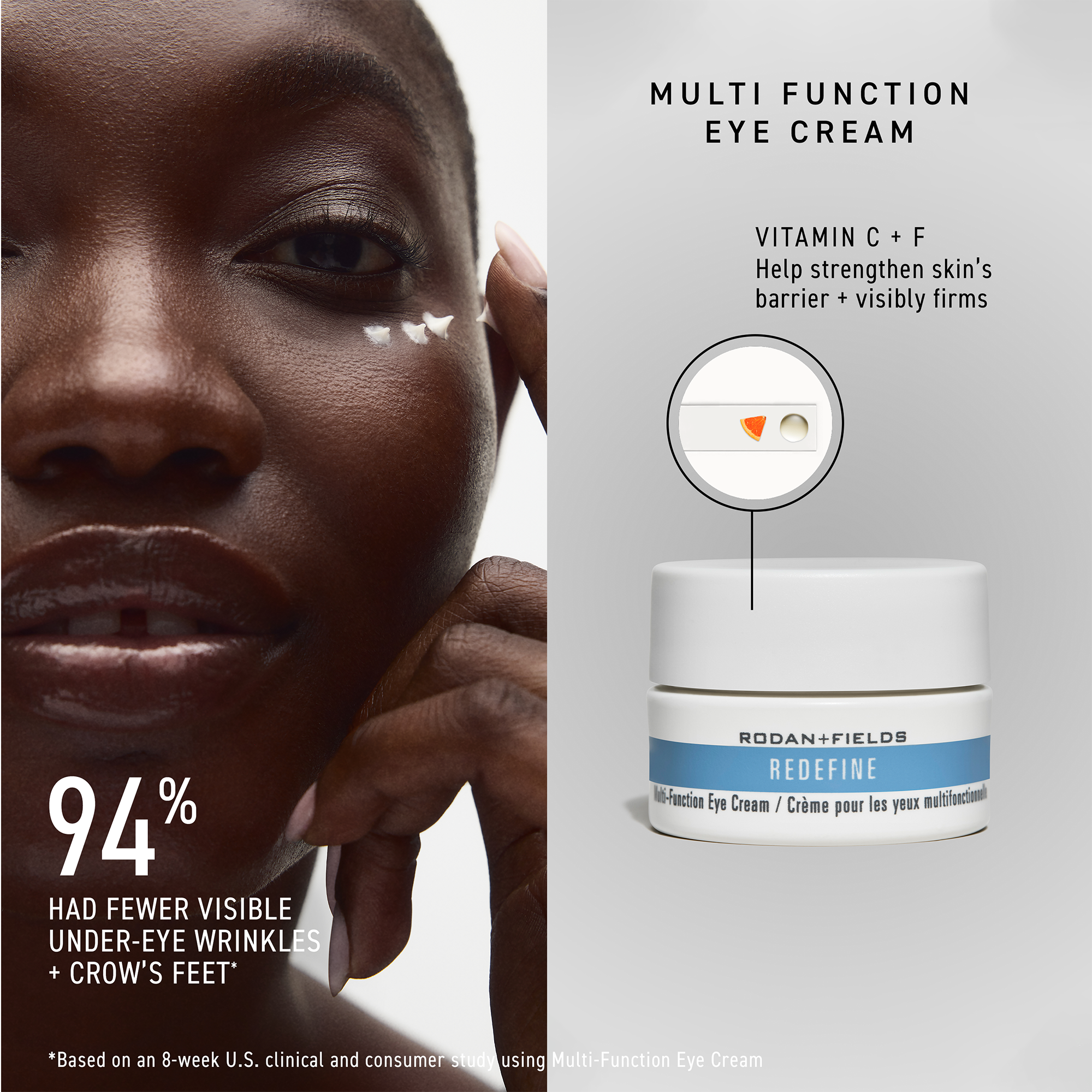 Redefine Multi-Function Eye Cream: Gently apply to eye area AM + PM.
