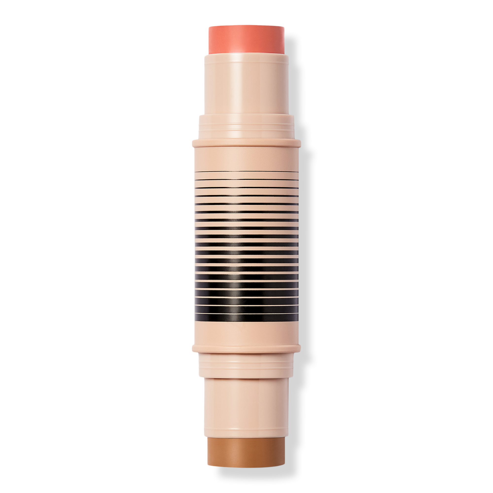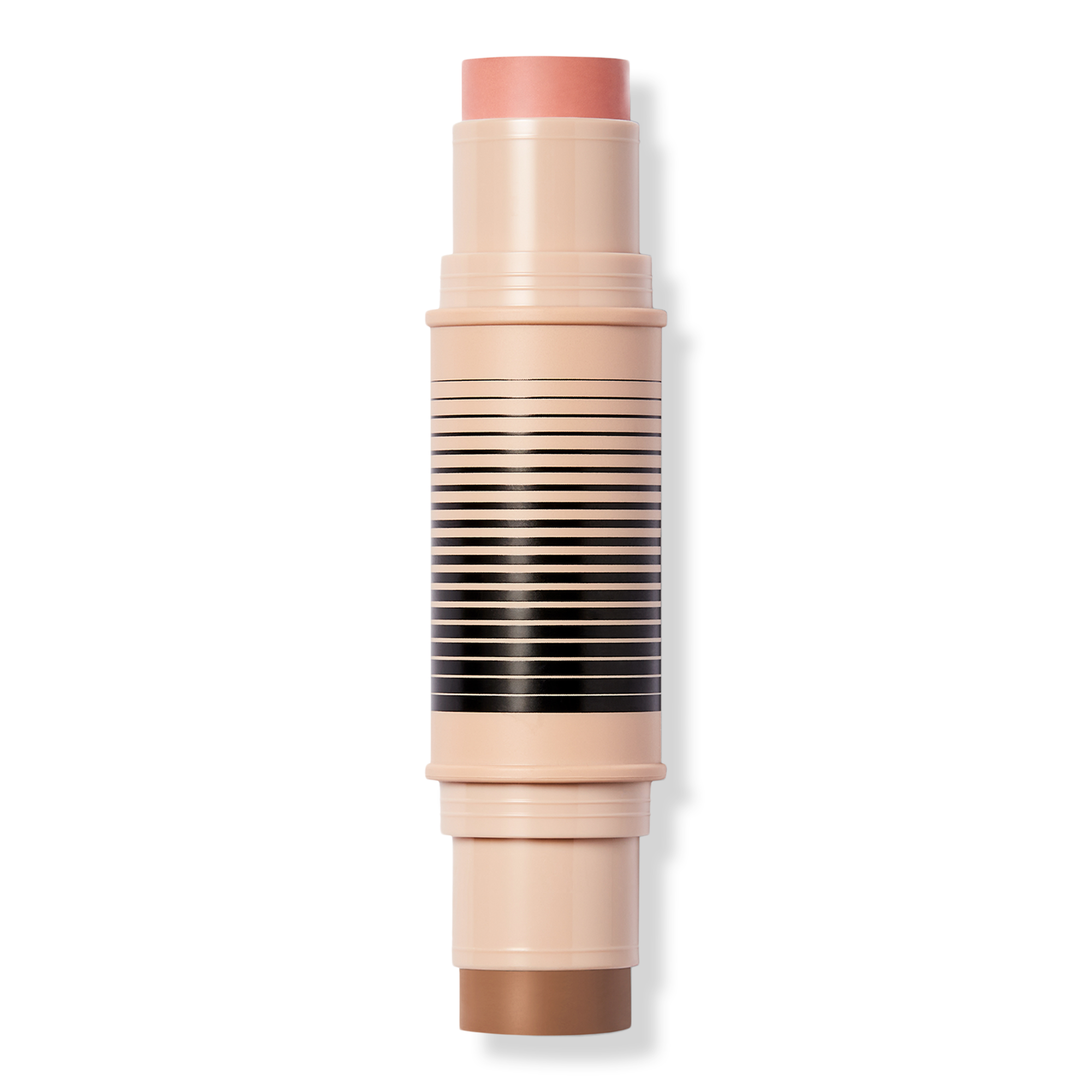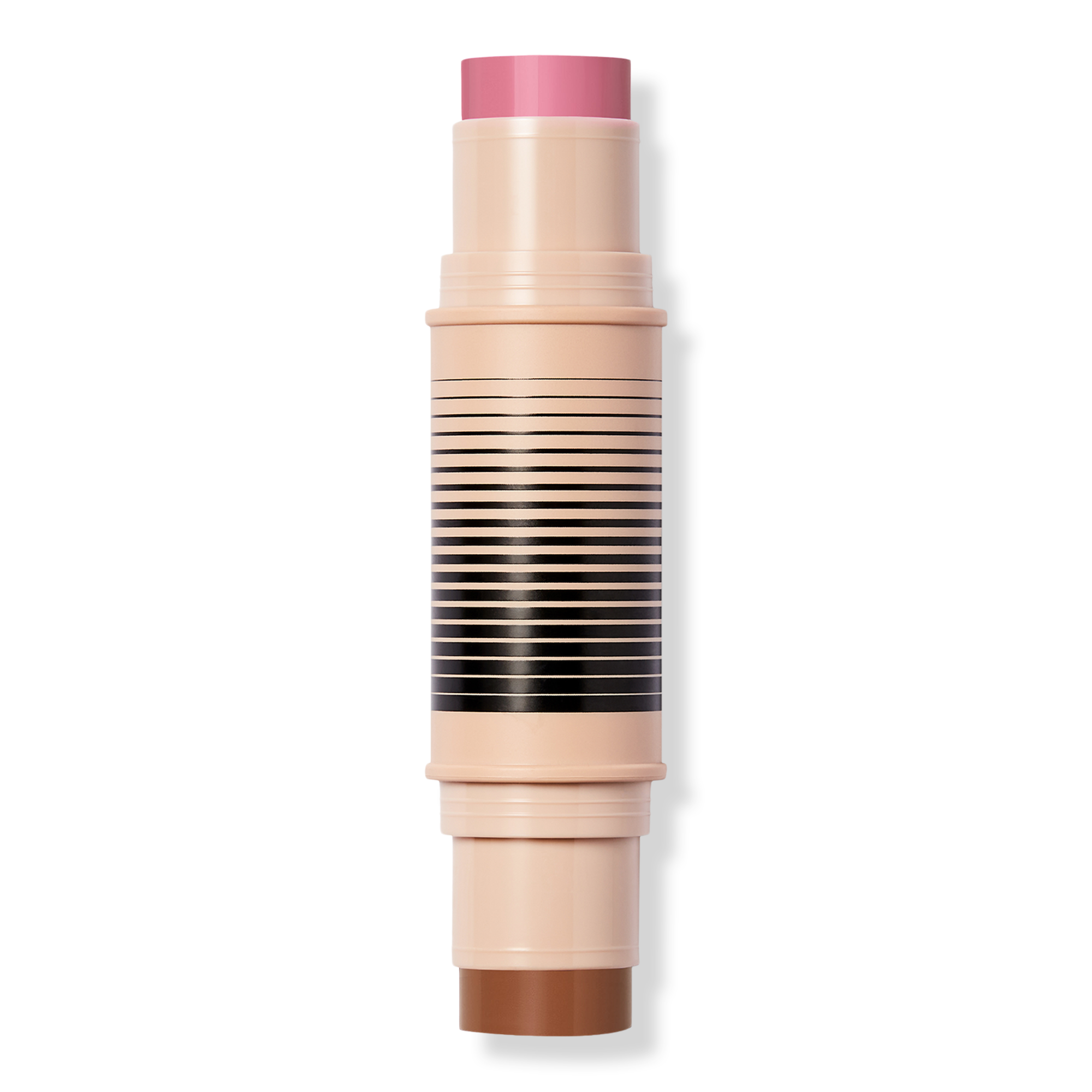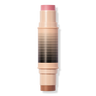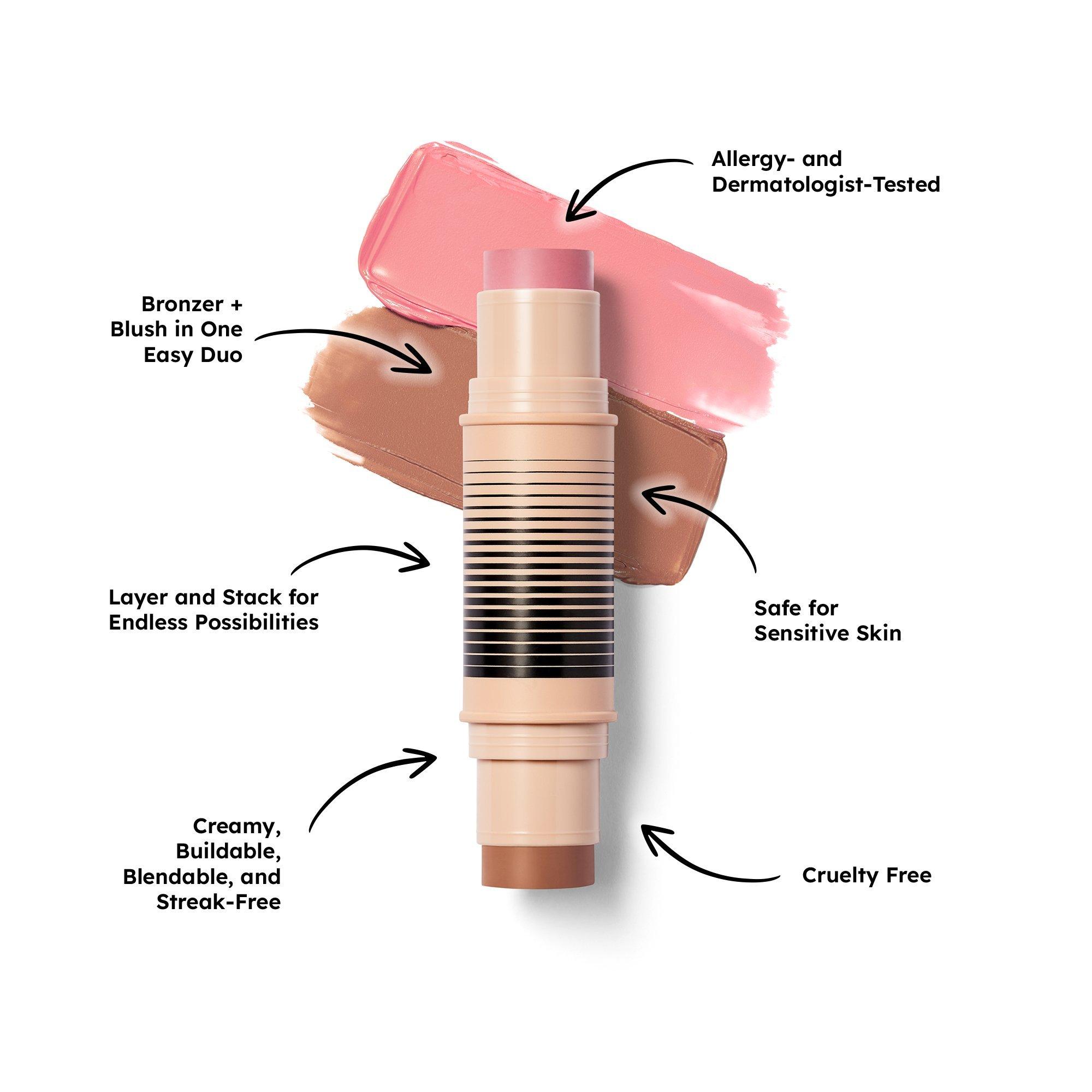 Swipe the bronzer on your forehead, nose, cheekbones, and jawline for warmth and dimension. Add blush to apples of cheeks and anywhere else you want a pop of color. Apply directly from the stick or tap Duo Brush Face to stick, blend with the Duo Brush Face or your fingertips. Start with your base primer or foundation, then layer the duo, and finish with a setting powder or baked blush/bronzer.