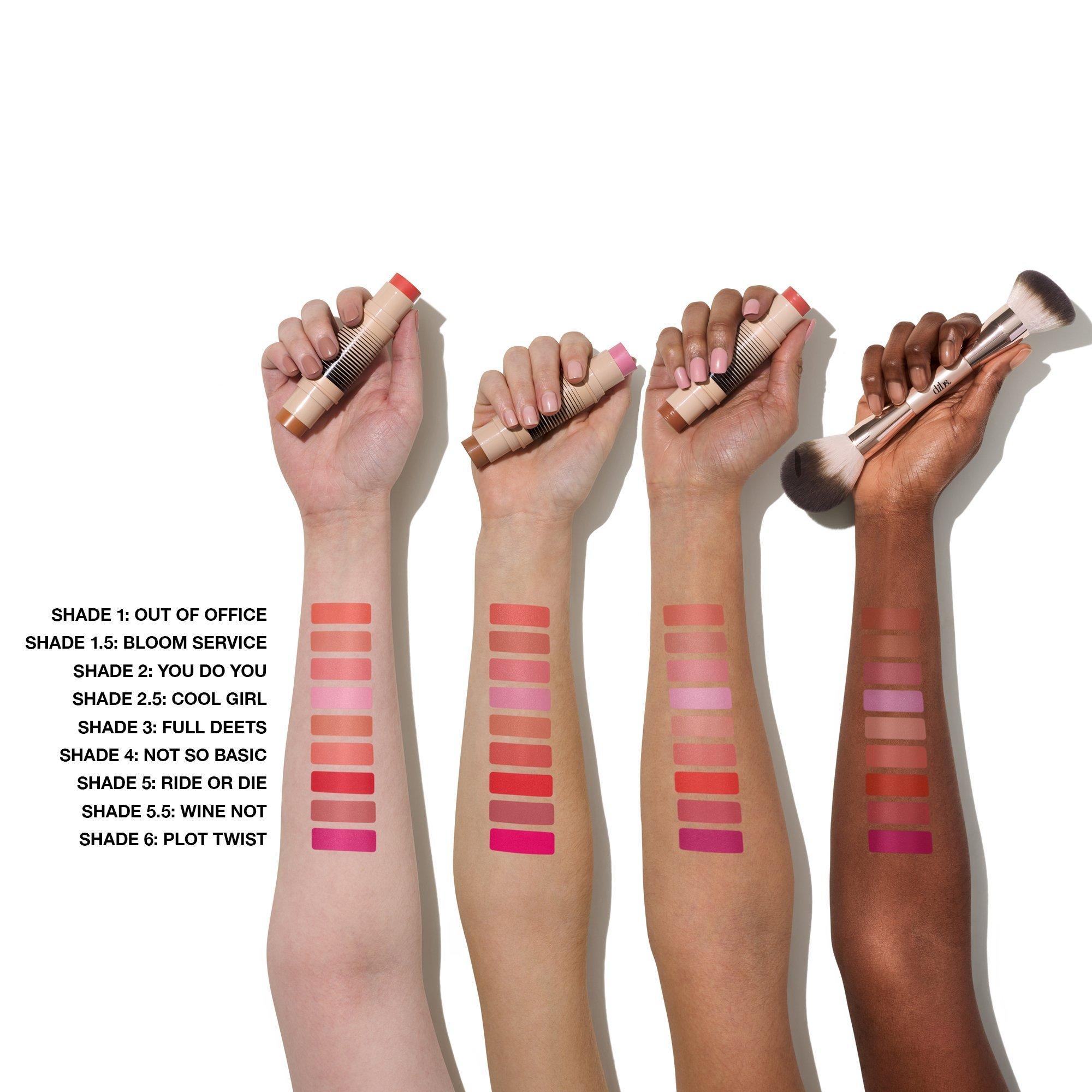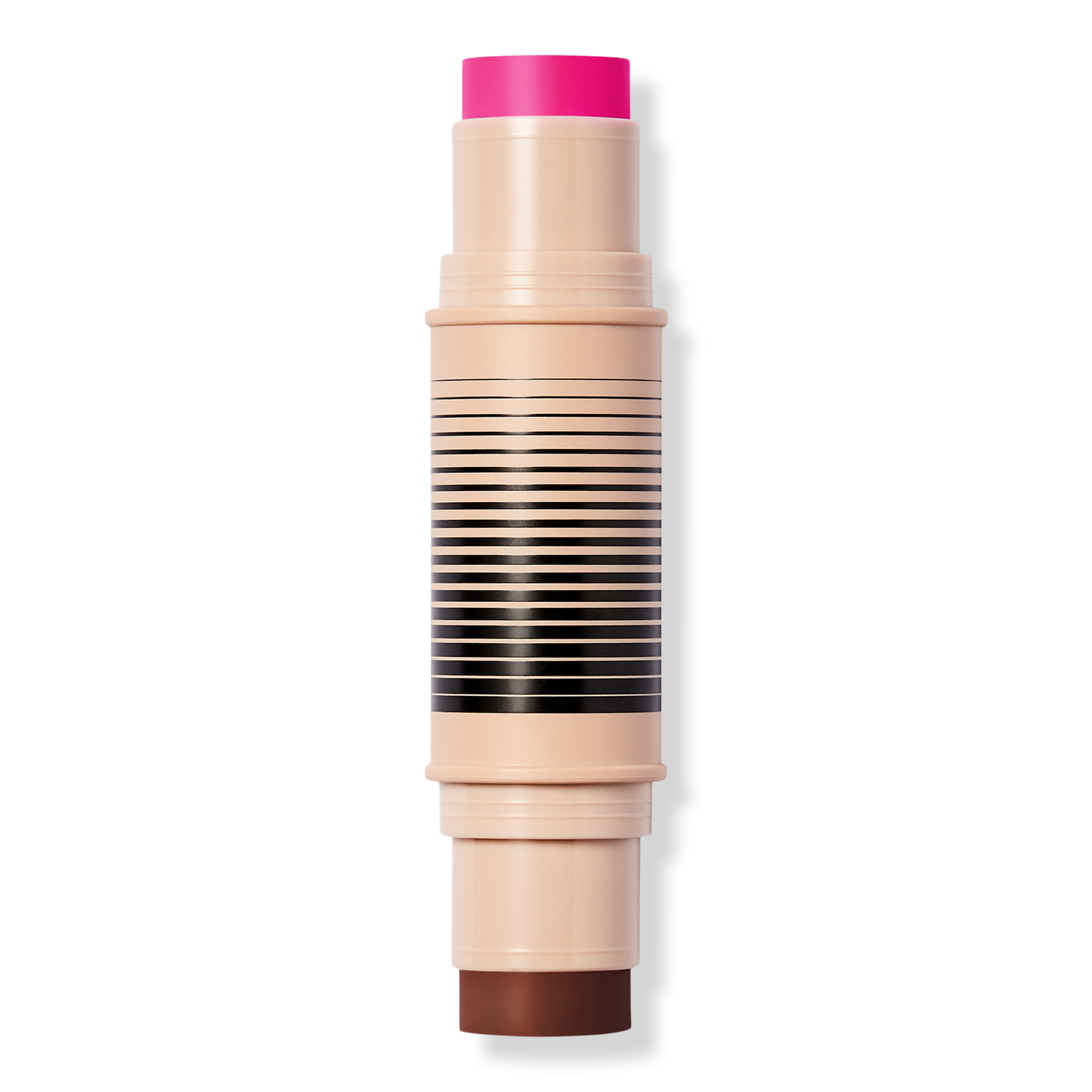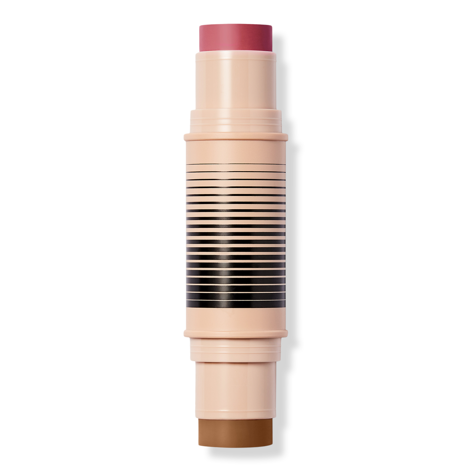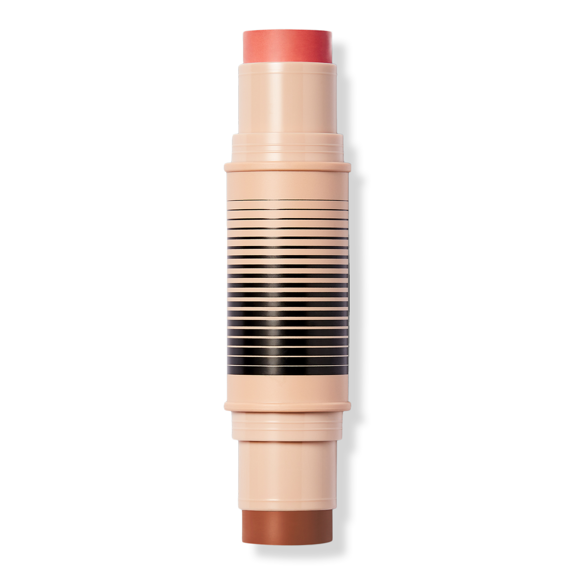 Swipe the bronzer on your forehead, nose, cheekbones, and jawline for warmth and dimension. Add blush to apples of cheeks and anywhere else you want a pop of color. Apply directly from the stick or tap Duo Brush Face to stick, blend with the Duo Brush Face or your fingertips. Start with your base primer or foundation, then layer the duo, and finish with a setting powder or baked blush/bronzer.