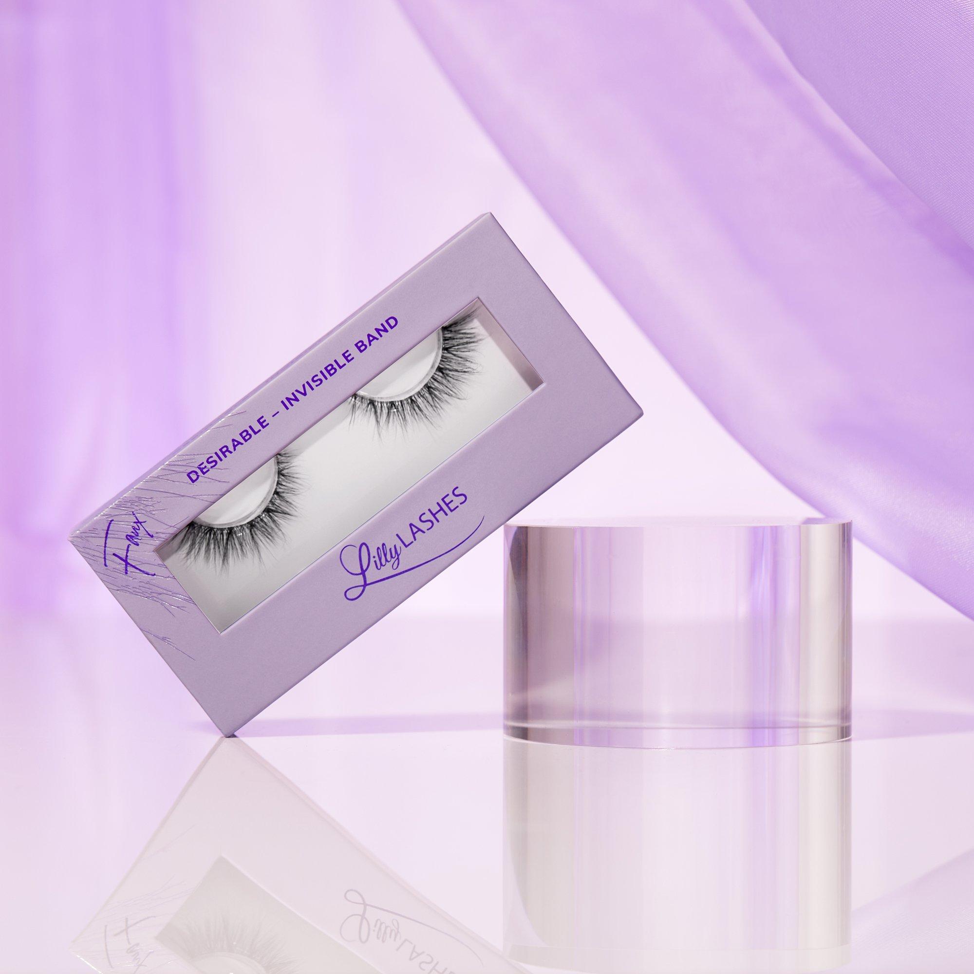The Desirable 3D Faux Mink Sheer Band Lashes by Lilly Lashes are versatile, stackable, customizable lashes woven on an invisible band that disappears into the lash line for natural glam looks.