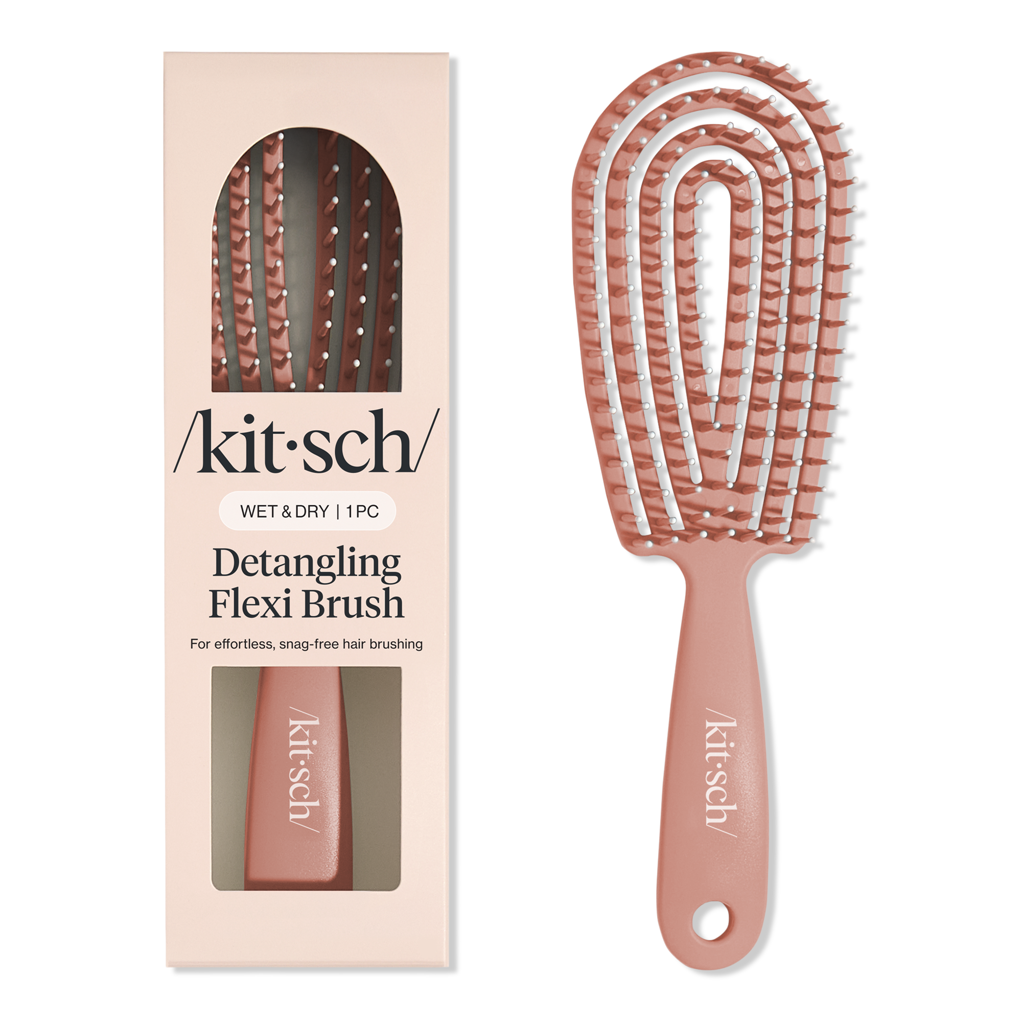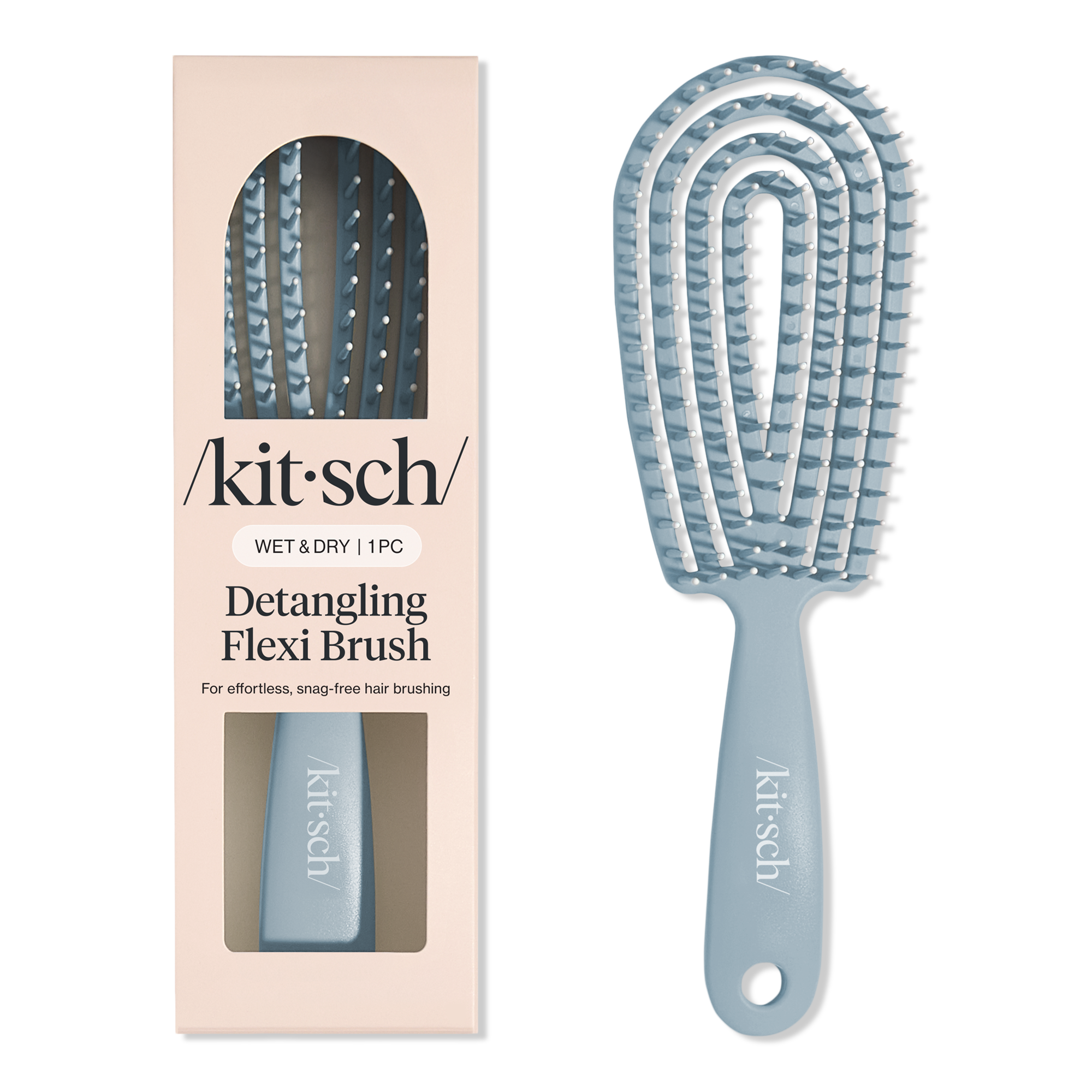 Say goodbye to tangles and hello to shine with the stylish Kitsch Detangling Flexi Brush. Its flexible bristles effortlessly glide through knots, smoothing your hair while giving your scalp a soothing massage. It's the perfect companion for quick styling and works wonders on all hair types!