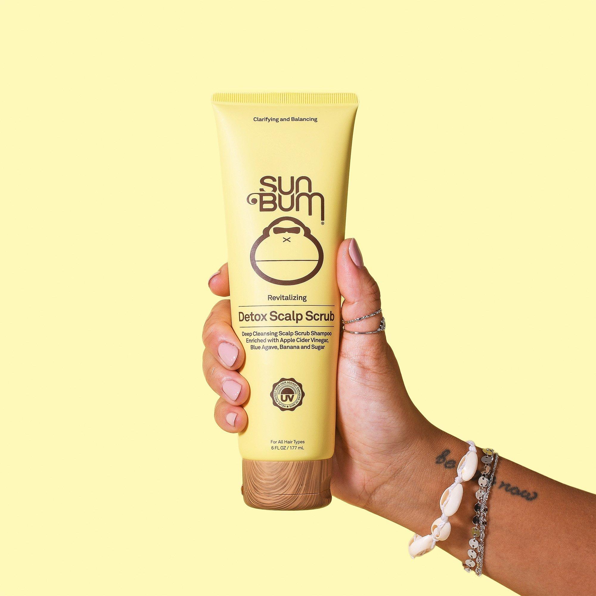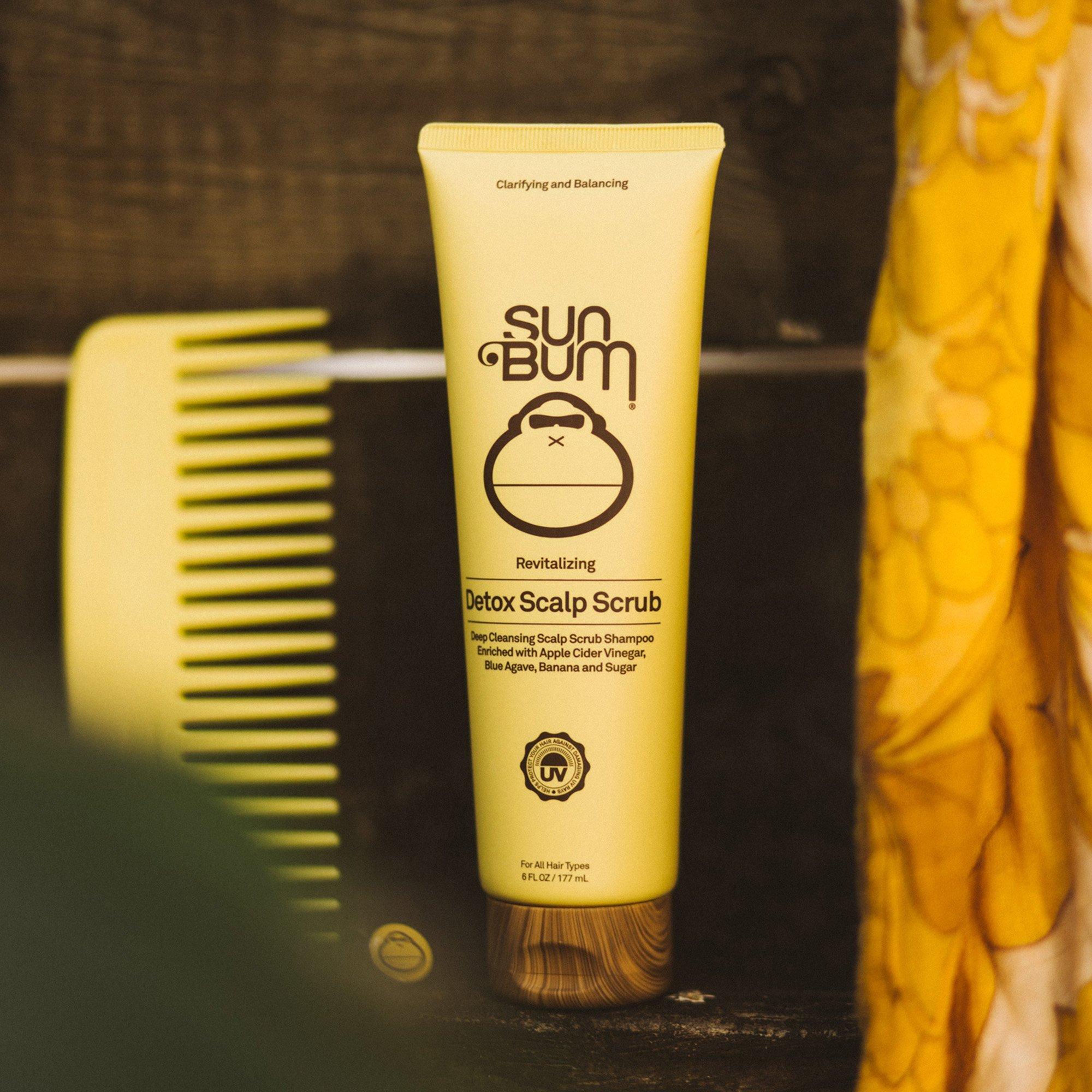 Sun Bum's Revitalizing Detox Scalp Scrub made with Apple Cider Vinegar, Blue Agave, Banana and Sugar, is specifically formulated to gently exfoliate and detoxify scalp of excess sebum (oil), dirt and product buildup - helping clear the way for hair to grow healthy and strong.
