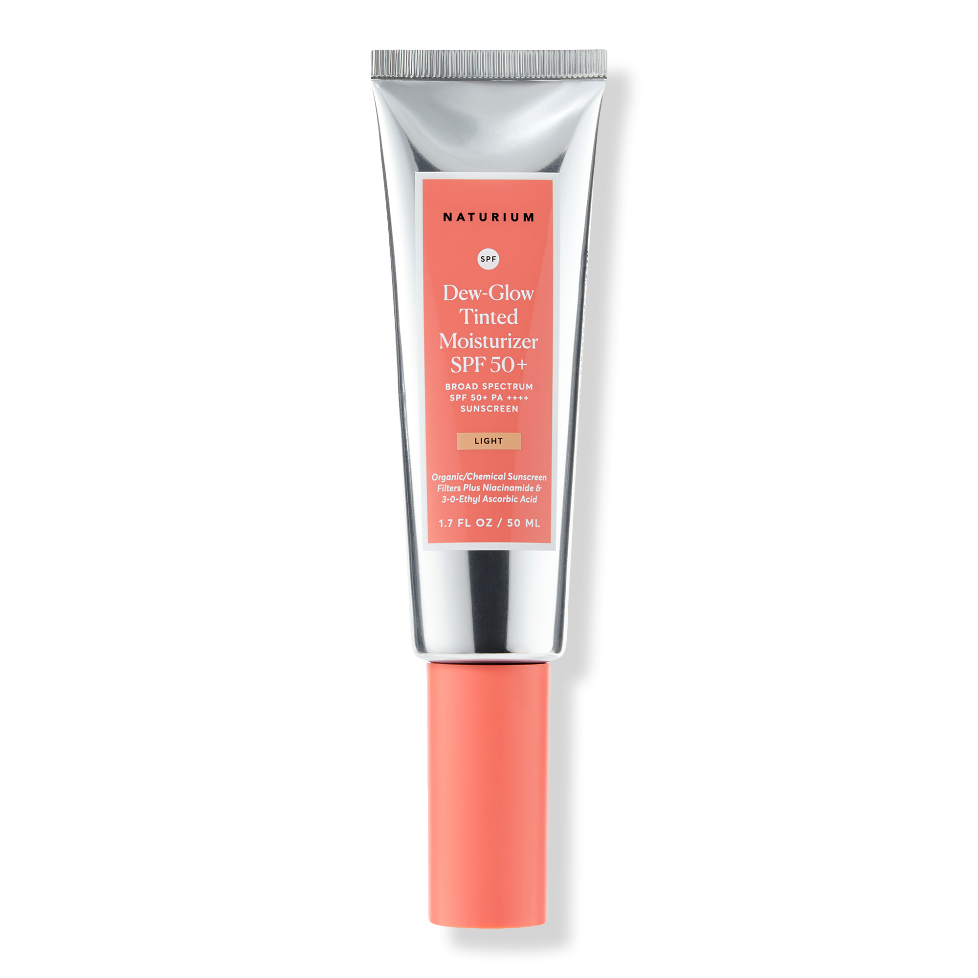Naturium's Dew-Glow Tinted Moisturizer SPF 50+ is formulated with organic/chemical sunscreen filters to provide broad spectrum protection while leaving a dewy, radiant finish with a sheer tint. Niacinamide and ethylated ascorbic acid help visibly improve the look of complexion.