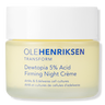 OLEHENRIKSEN Dewtopia 5% AHA Firming Night Crème is a powerful, visibly retexturizing night cream to intensely hydrate, smooth, visibly even skin tone, and reduce the look of fine lines, wrinkles, and dark spots.