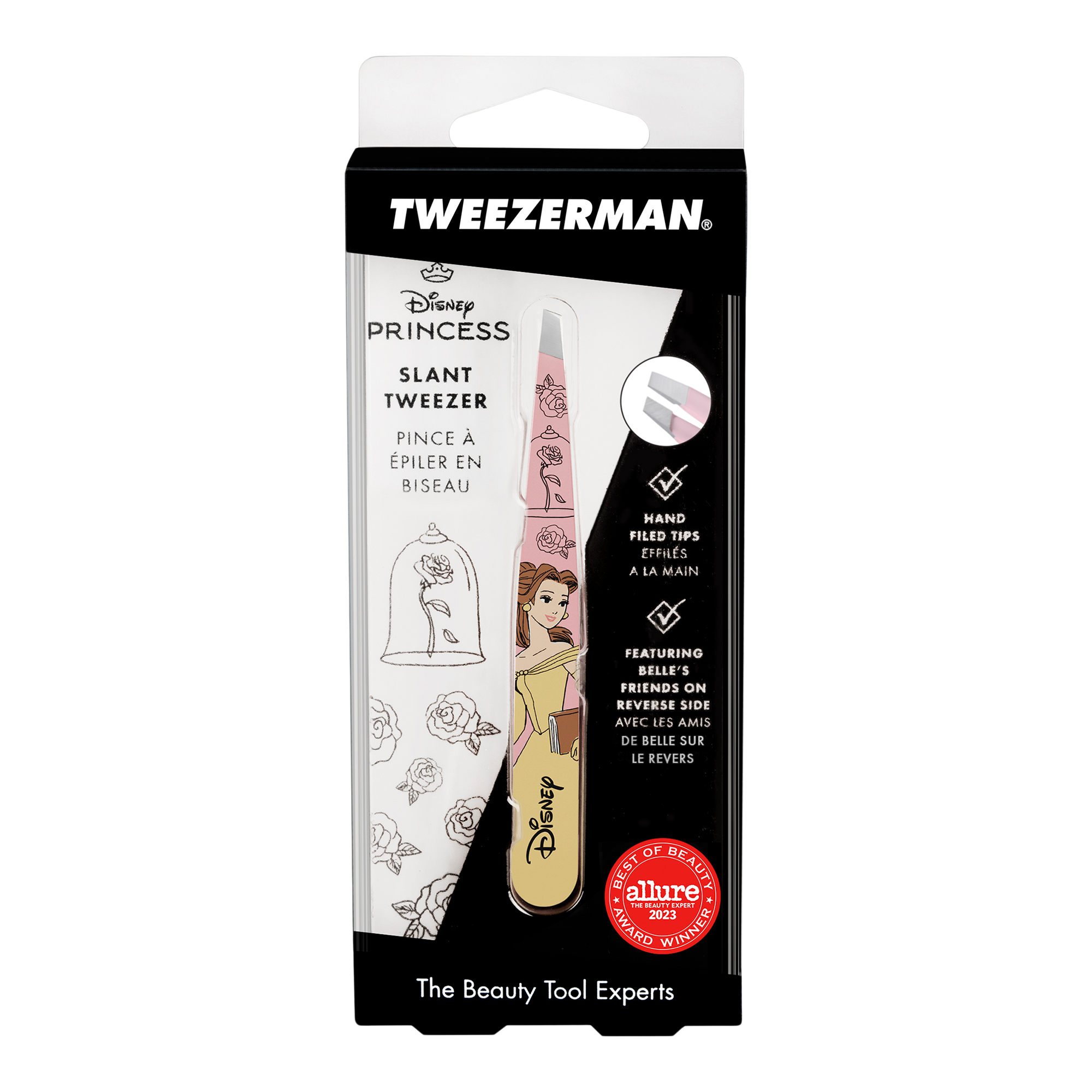 Embrace your natural beauty with Tweezerman's award-winning Slant Tweezer, inspired by the story book dreams of Disney's Belle. Crafted with hand-filed and perfectly aligned tips to shape your brows with true precision. Enchanting brows await you!