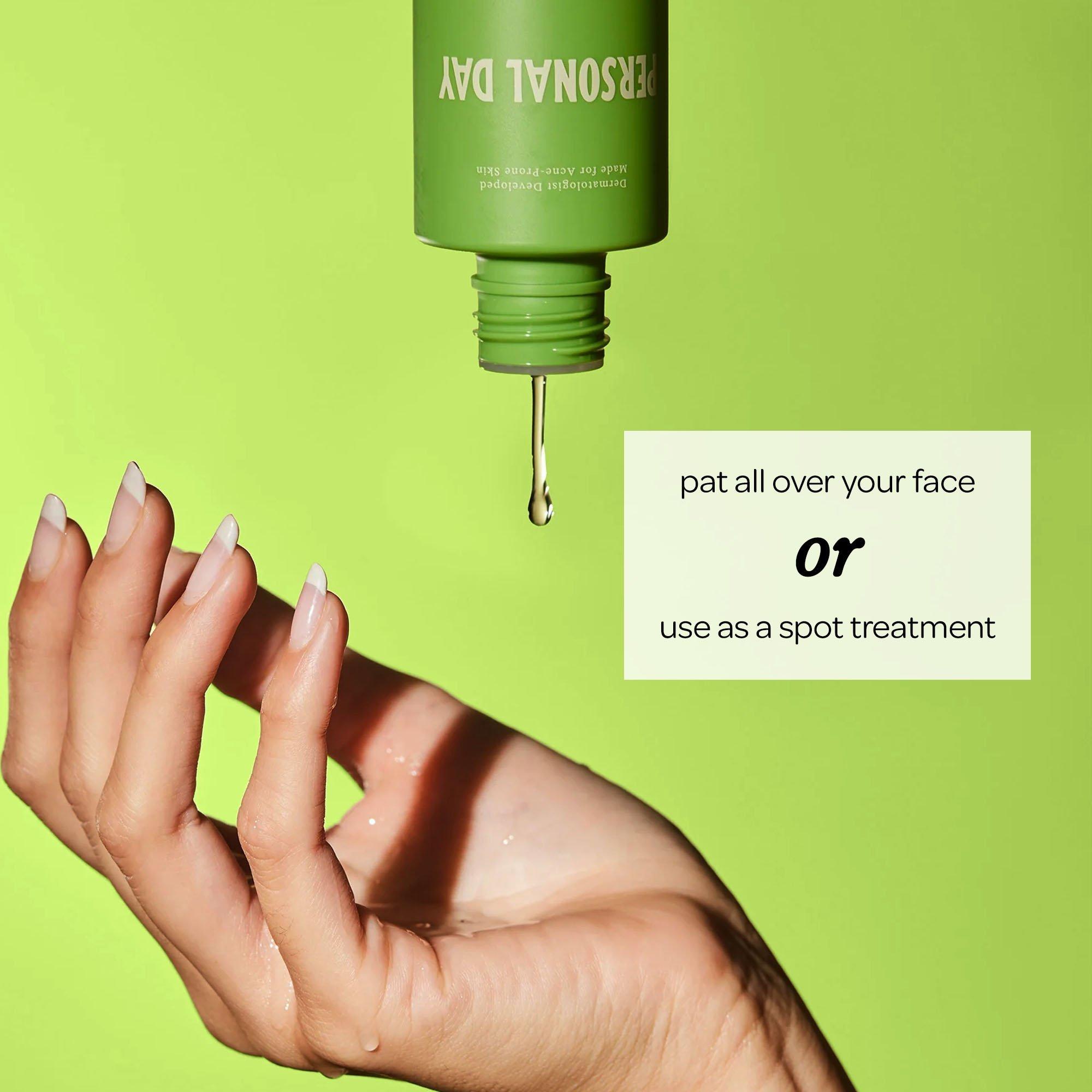 Clear breakouts fast without drying out your skin with Personal Day Doing The Work Salicylic Acid Acne Treatment. It clears active breakouts, soothes angry skin, calms redness, and brightens complexion. Fast-acting but gentle, it can be used both all over your face or as a spot treatment.