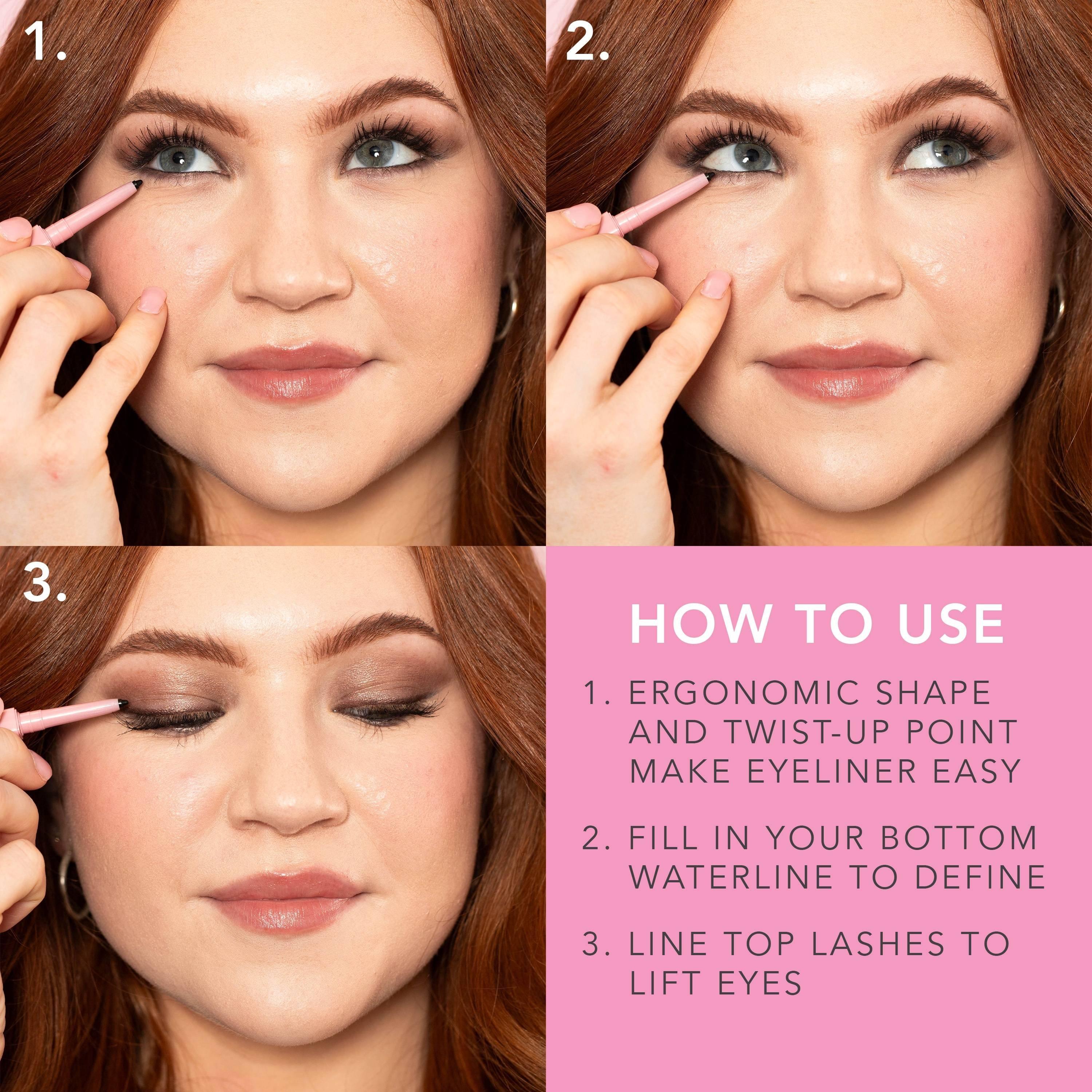 Twist up the fine‐tip point and glide along the lash line using light, steady strokes to create your desired look. Use the tip for precise definition or angle the pencil for a softer, smudged effect.