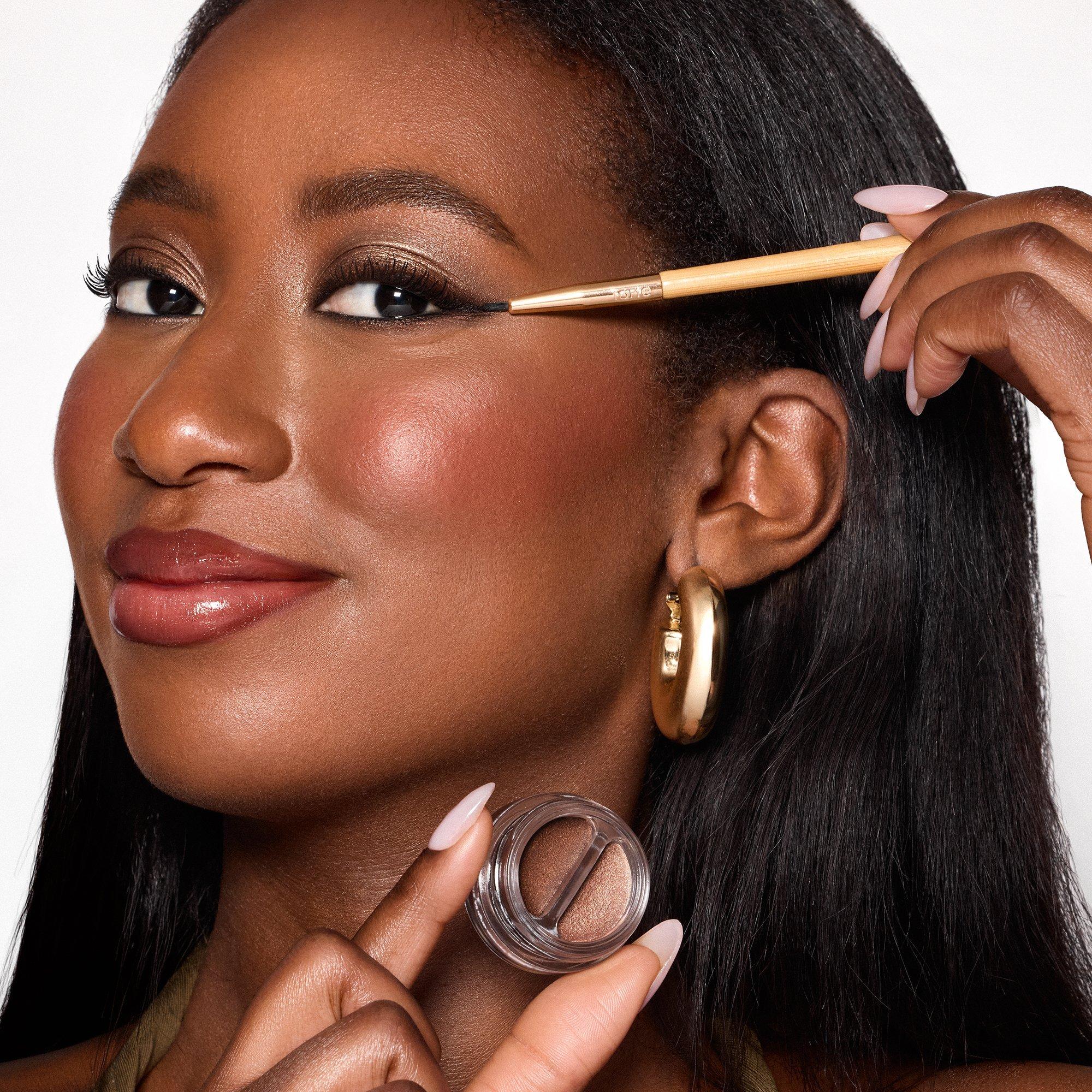 tarte's multi-tasking Double-Ended Shadow & Liner Brush = double take clay pot shadow liner’s new bestie.