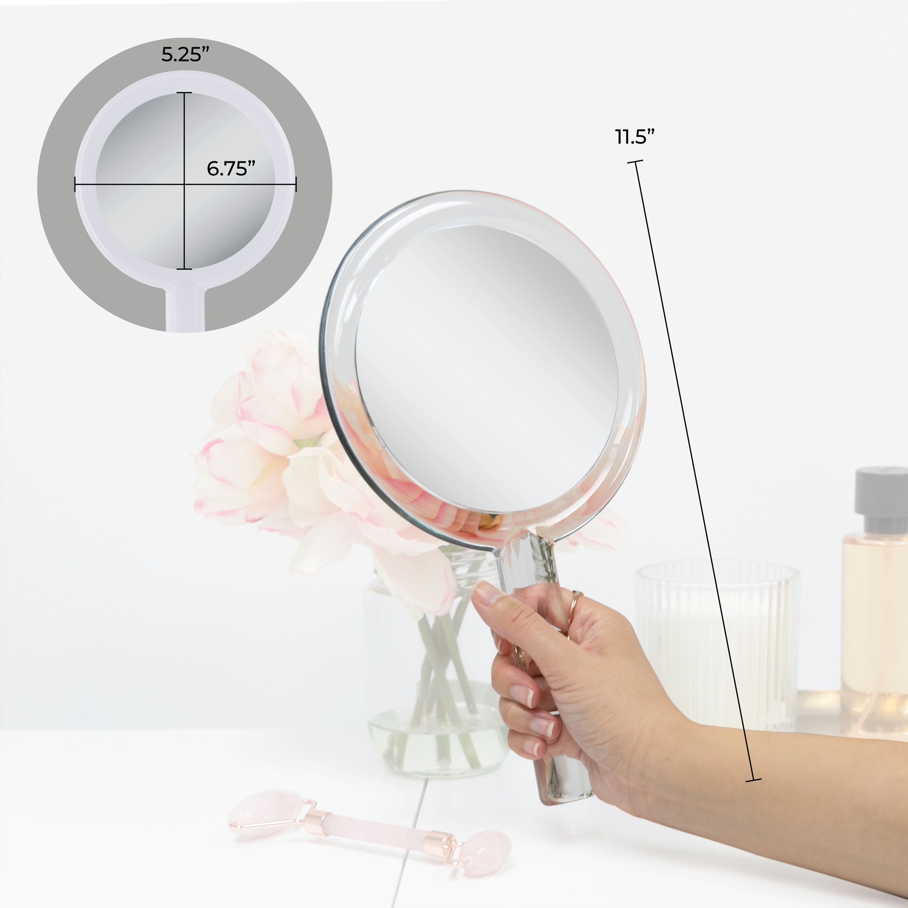 • A reflective mirror surface of 5.25-inch by 5.25-inch