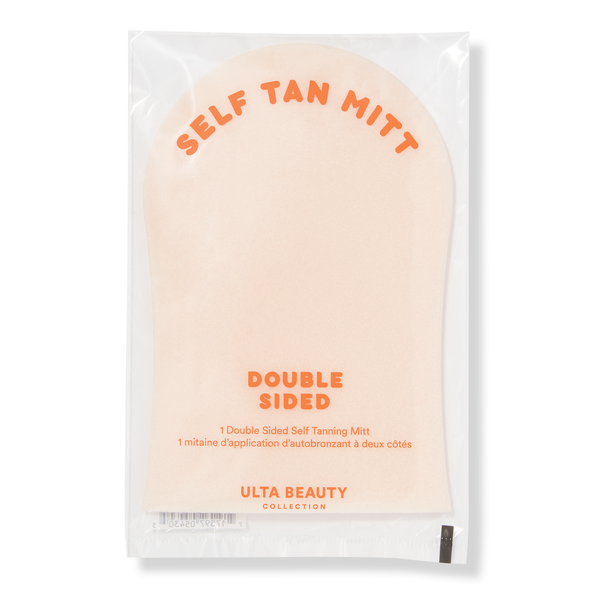 For a flawless sunless tan, cleanse and gently exfoliate the body before applying your sunless tanning product directly to the mitt. Use gentle sweeping motions to blend the product into the skin. Remember to gently hand wash your mitt in cool water with mild detergent; rinse thoroughly. Air dry away from direct heat. Do not bleach, dry clean, or tumble dry. Avoid contact with other fabrics or surfaces after use. Pro tip: apply sunless tanning products sparingly around ankles, knees and elbows. Try bending knees and elbows when applying to avoid streaking in skin creases. Pair it with Ulta Beauty Collection's Sunless Tan Body Mousse for best results. The double-sided mitt can be used from any angle, making it a must-have in your suncare routine.