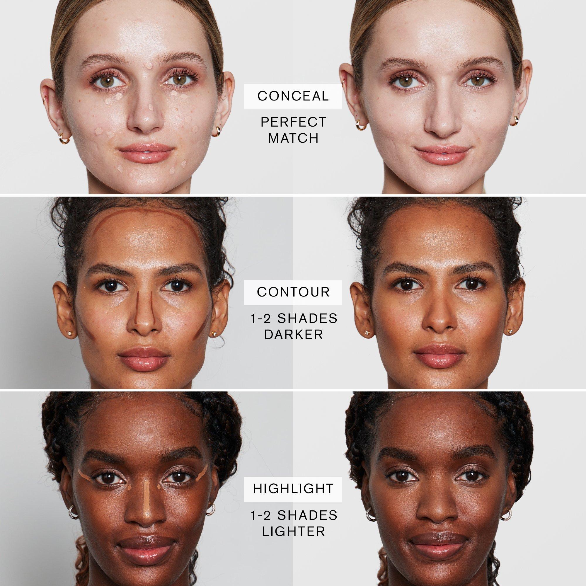 To start, choose a concealer shade based on your desired effect (always in your undertone).