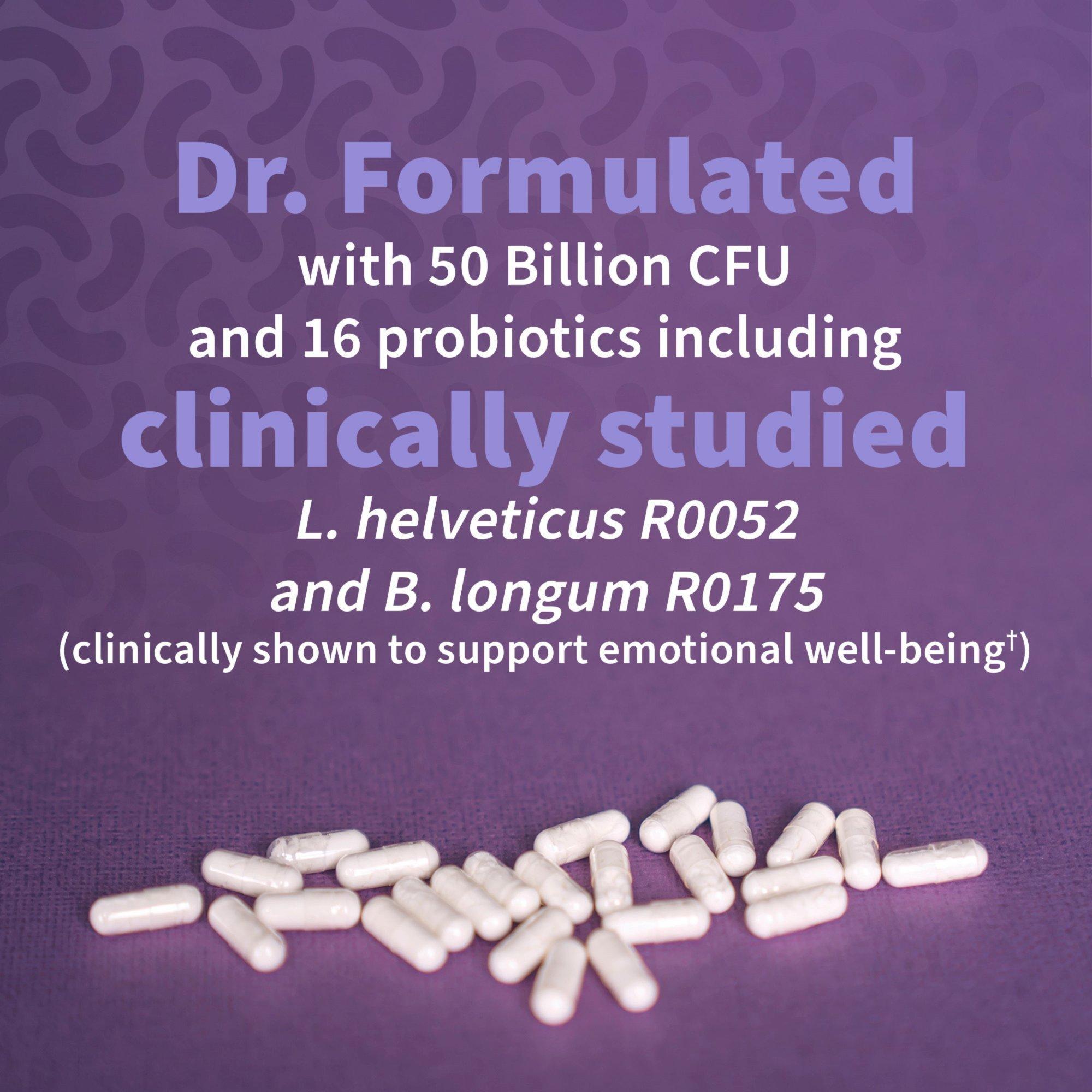 Garden of Life Dr. Formulated Probiotics Mood+ with probiotics clinically shown to support mood, emotional well-being and relaxation.† Along with ashwagandha and Alaskan blueberries for stress management.†