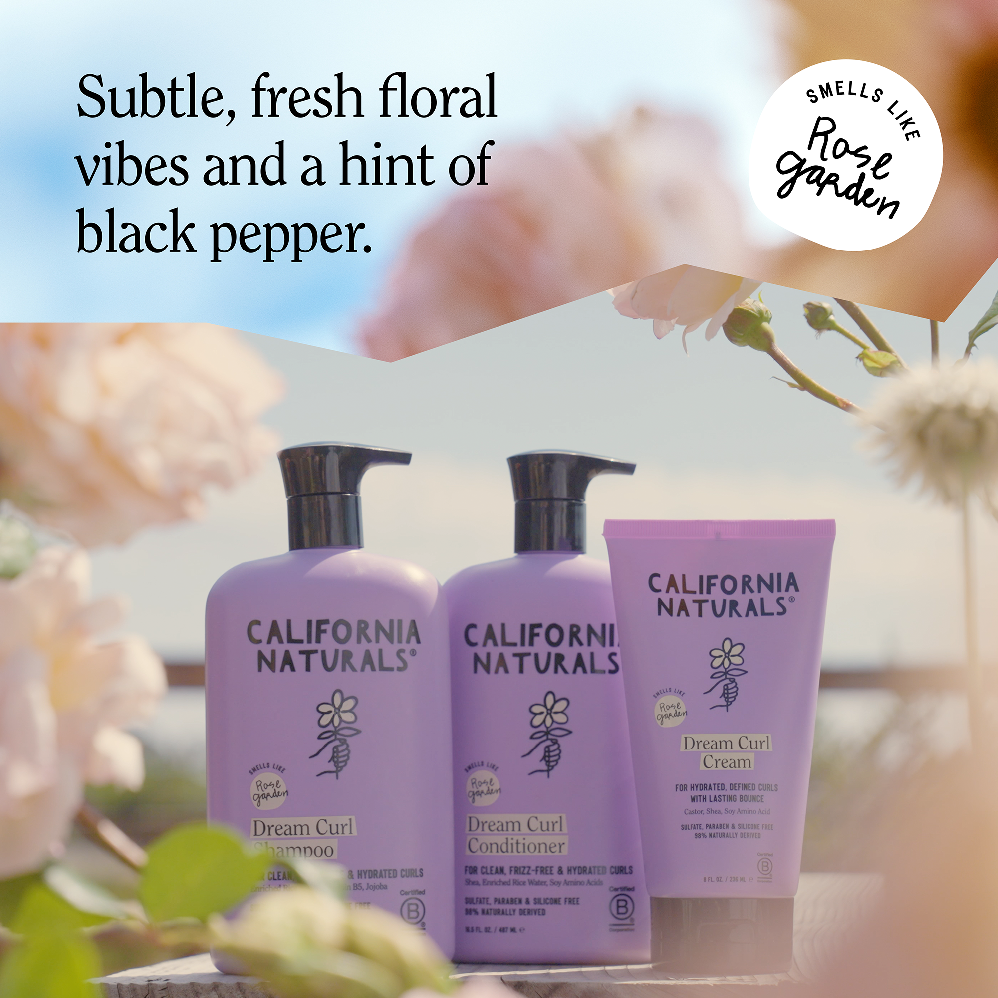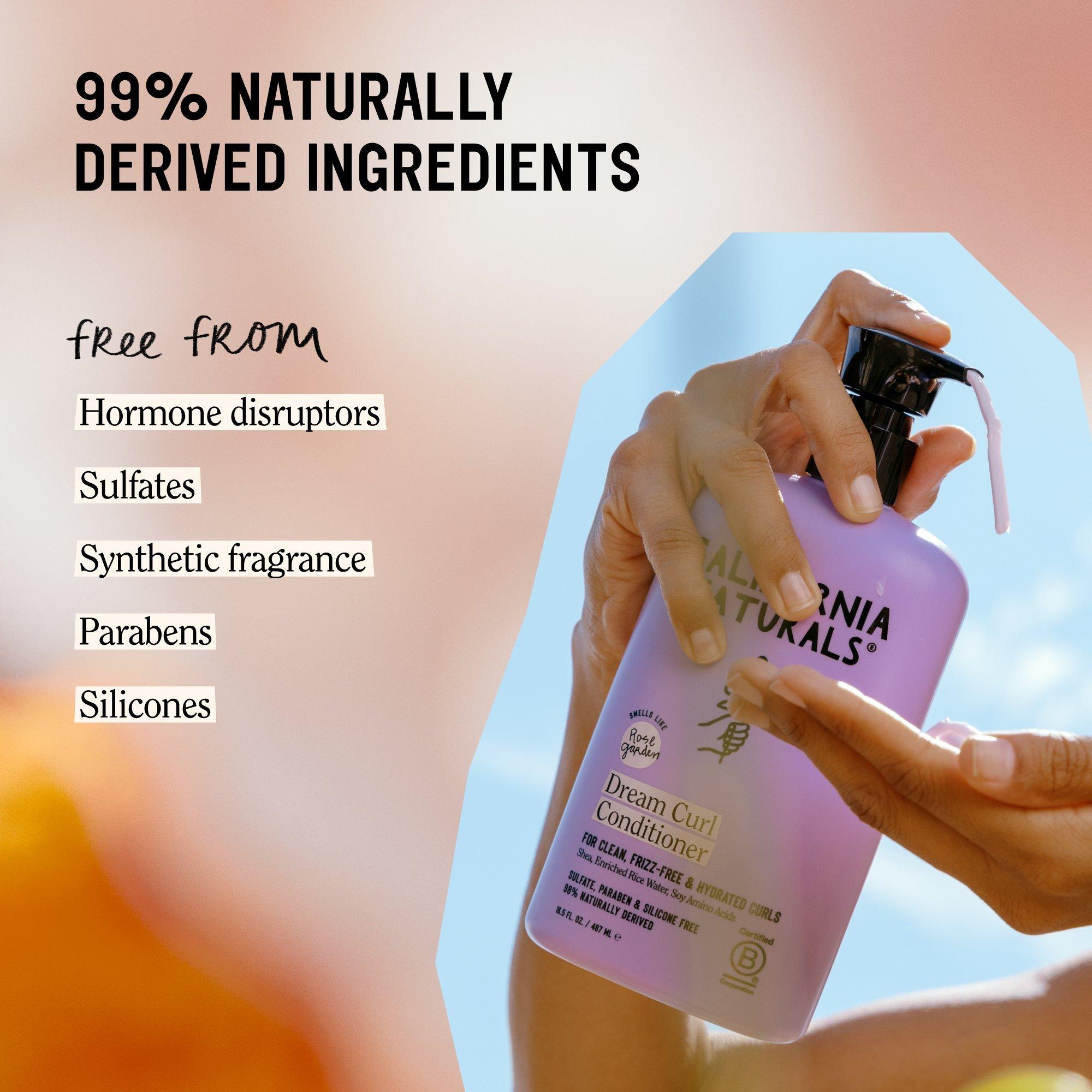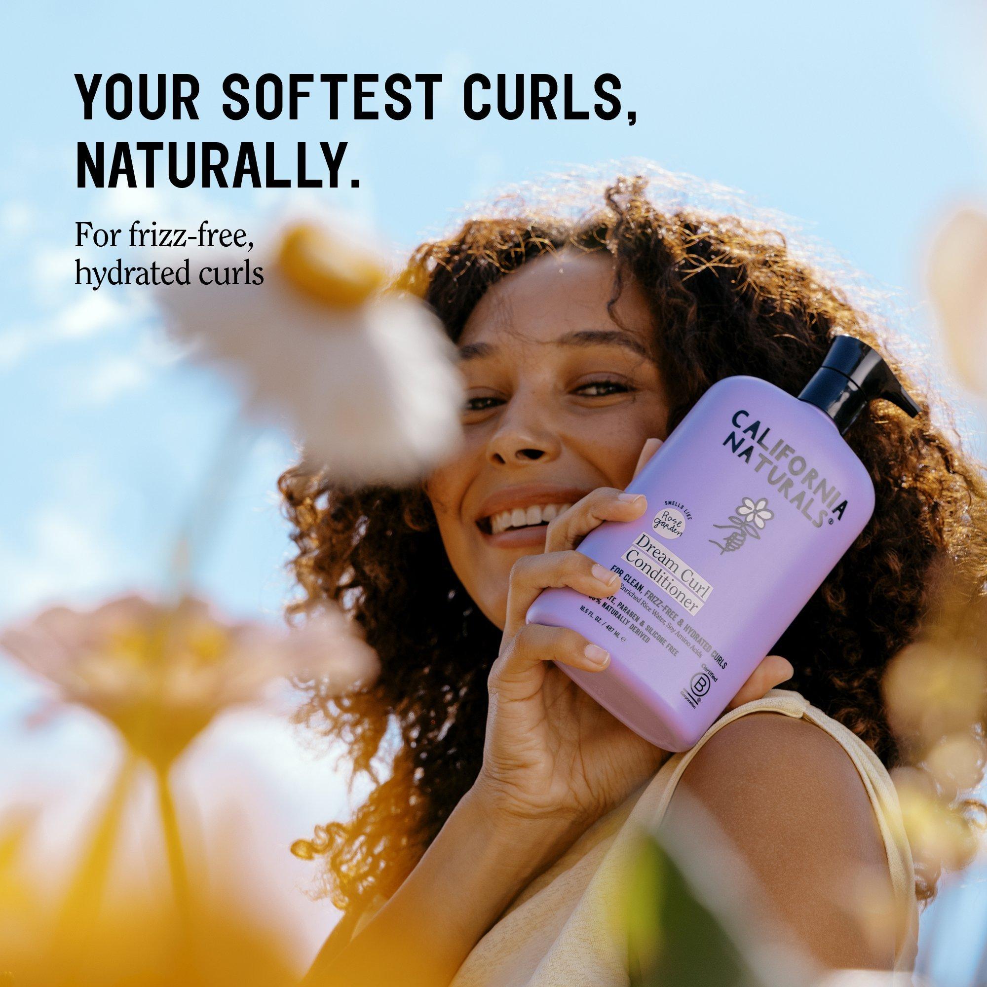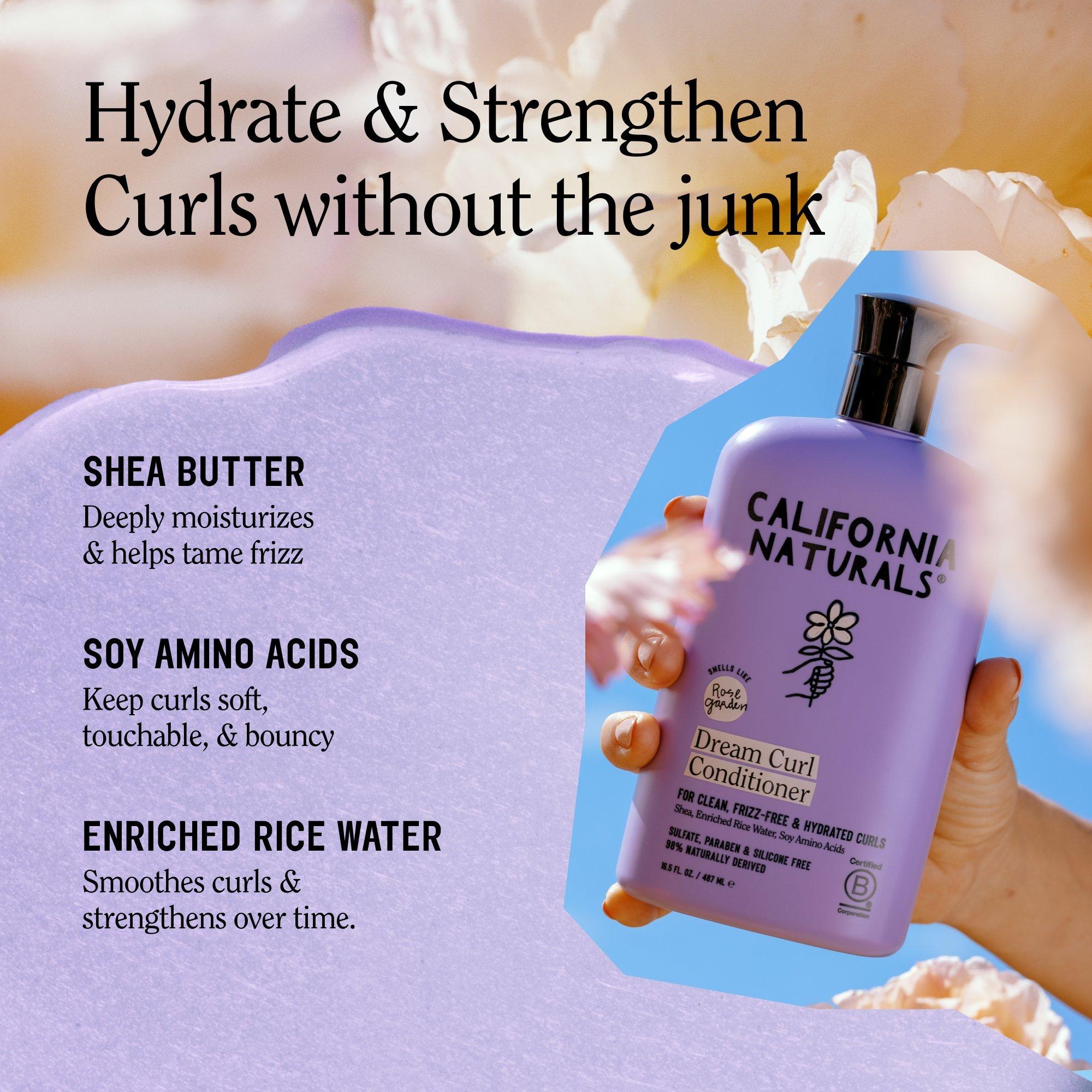 California Naturals Dream Curl Conditioner helps to hydrate, detangle, and strengthen curls naturally with Shea Butter, Rice Water, and Soy Amino Acids. This clean formula helps tame frizz, reduce breakage, and keep curls soft, bouncy, and touchably smooth. Rose Garden scent is a sweet, fresh treat.