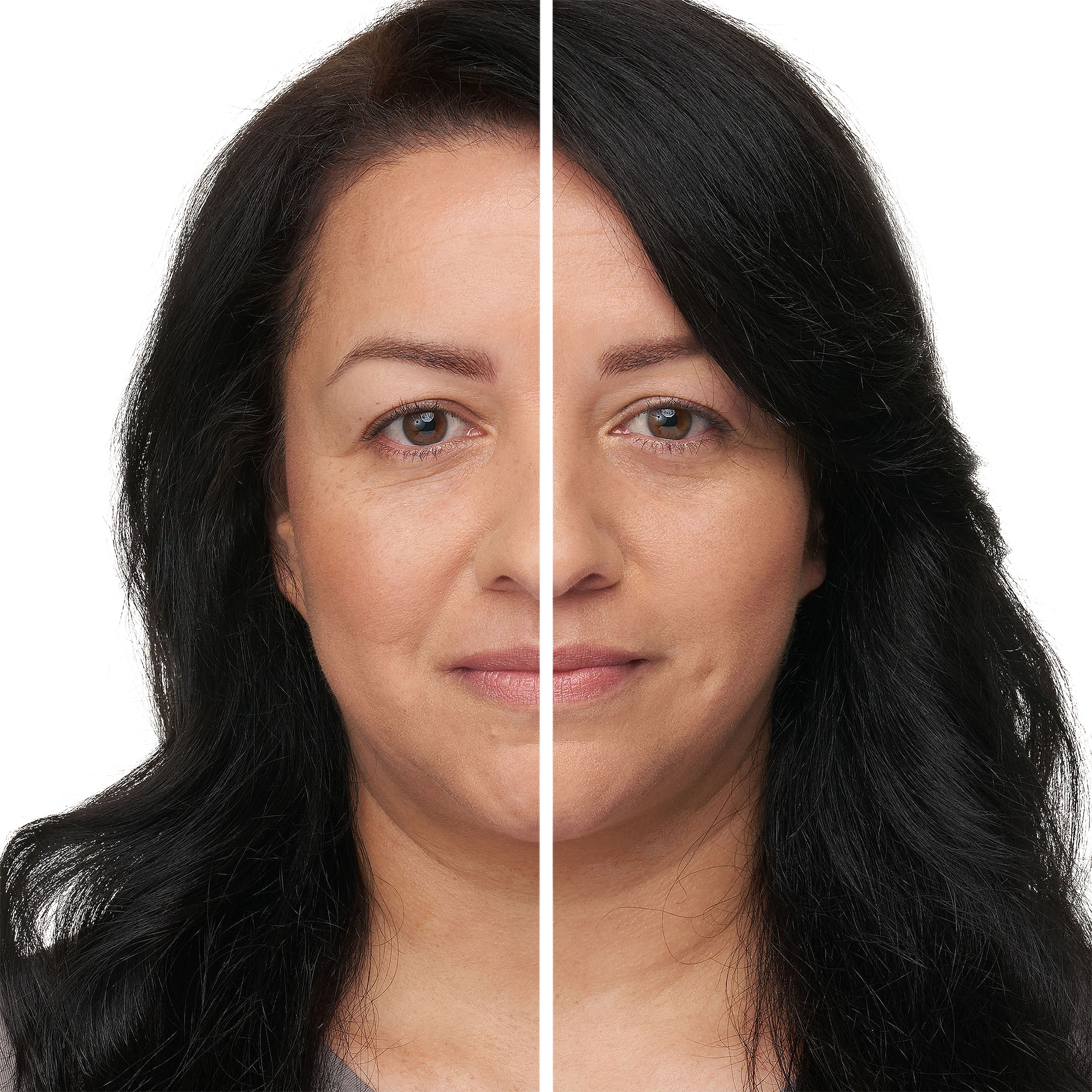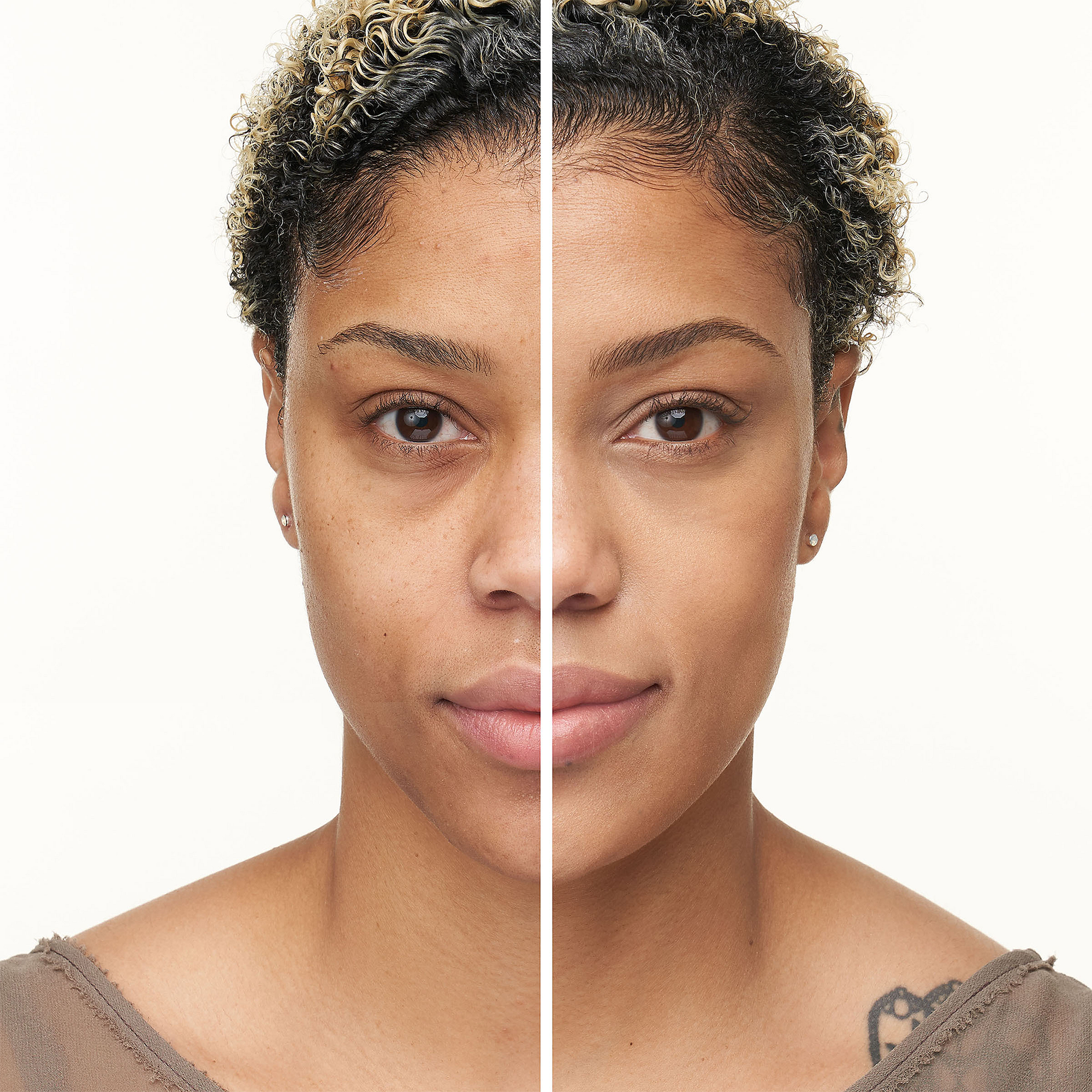 Apply a pea to dime-sized amount all over the face with a blending brush or fingers, blending well.