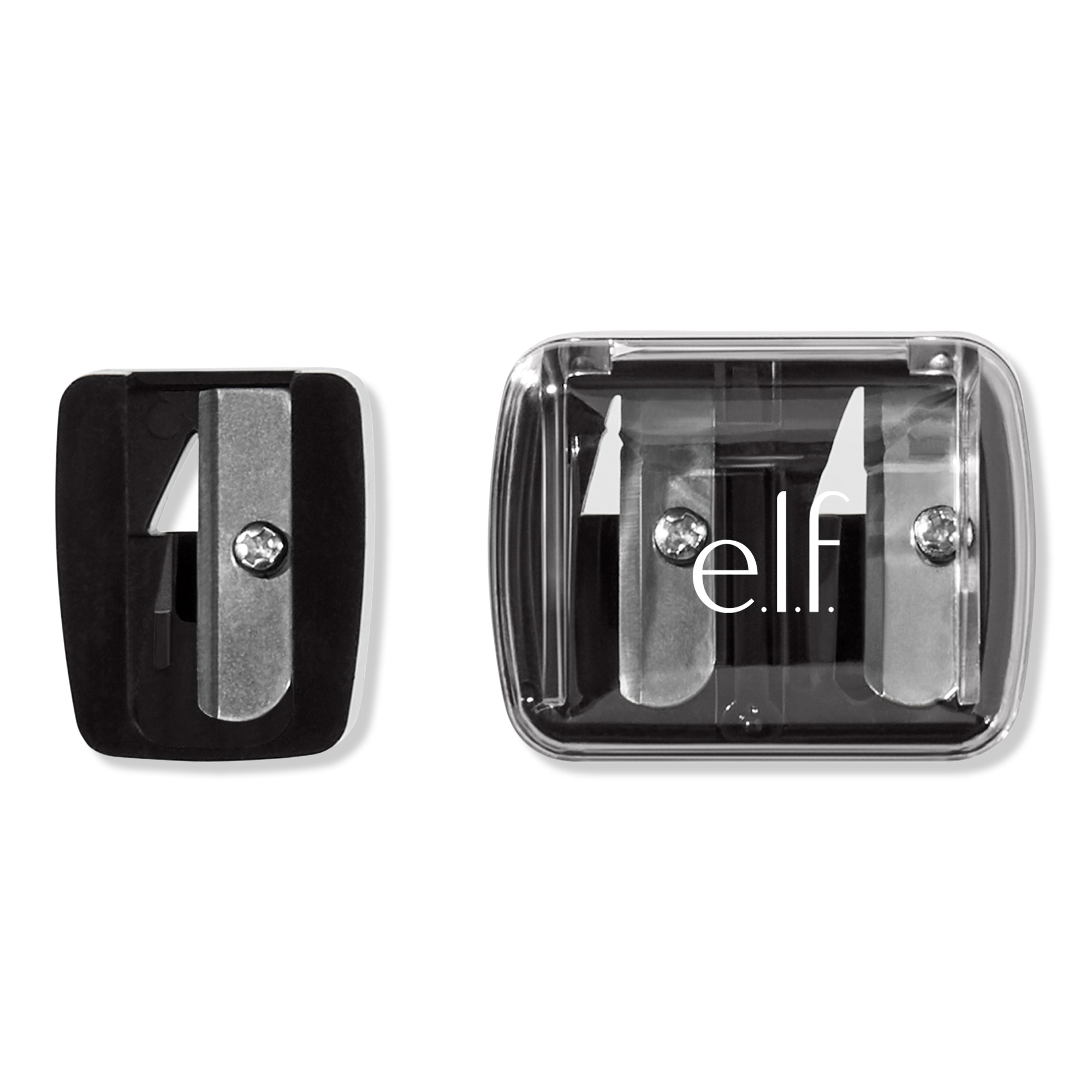 The e.l.f. Cosmetics Dual-Pencil Sharpener is the essential tool for sharpening pencils of any size to maintain professional and precise application. Two hole sizes fit a range of pencils. The cover captures shavings and allows for easy cleaning.